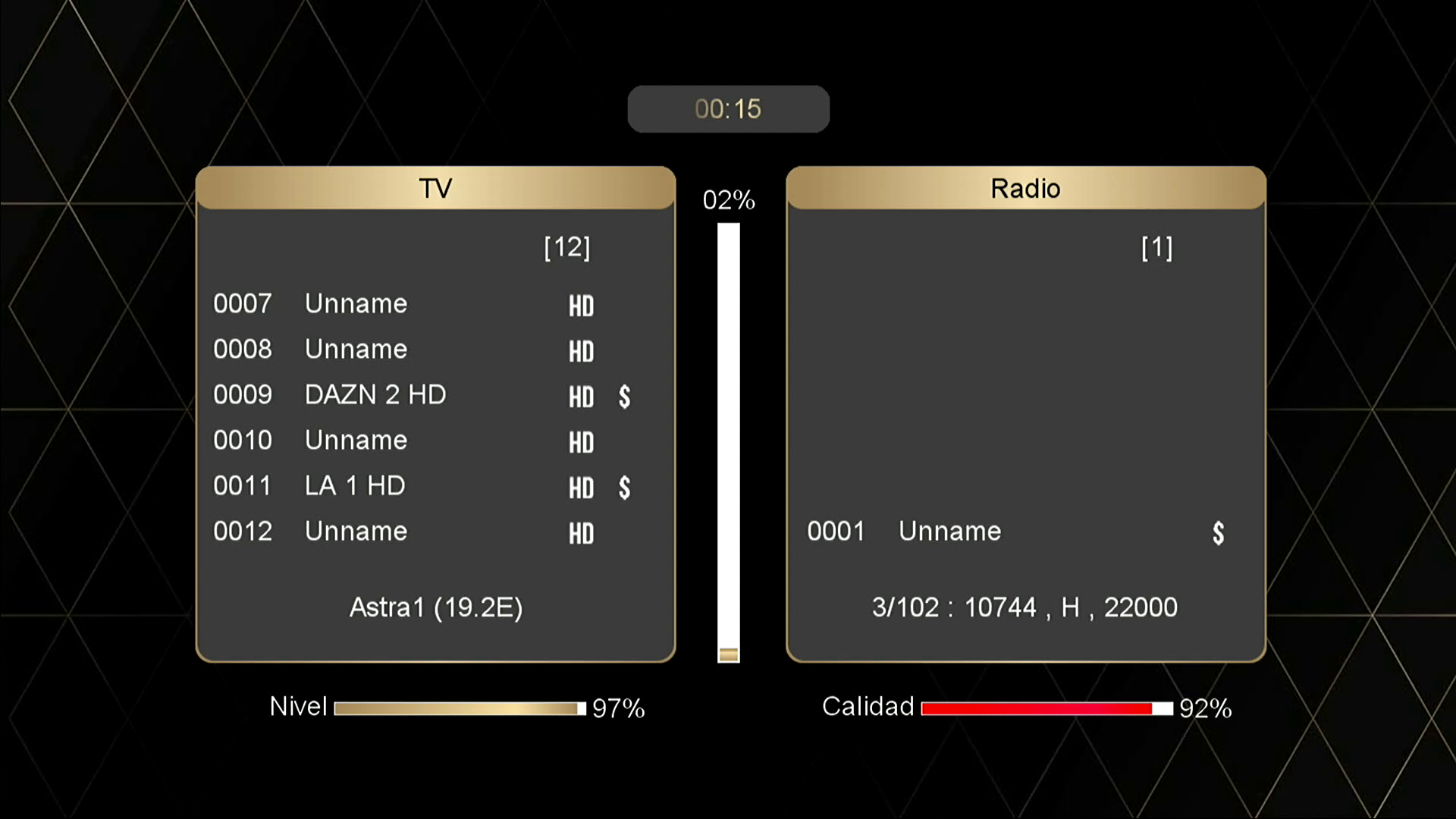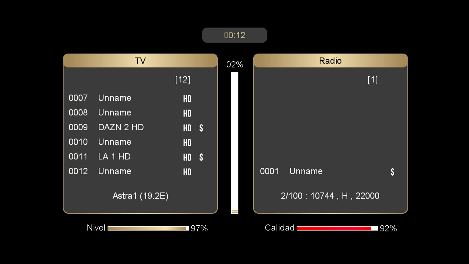 Para la activacion de menu ocultos del sistema cuando estamos visionando un canal satelite podemos pulsar boton audio + 0000 y se activaran menus ocultos del sistema