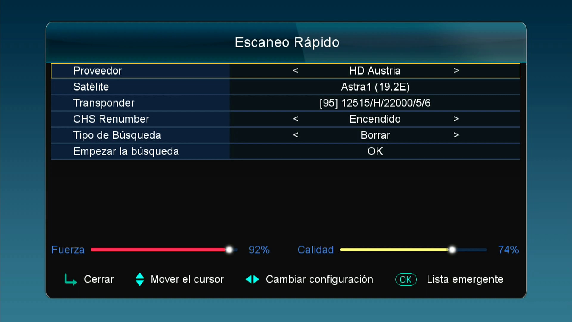 Capturas de menu de configuracion tuner y busqueda canales