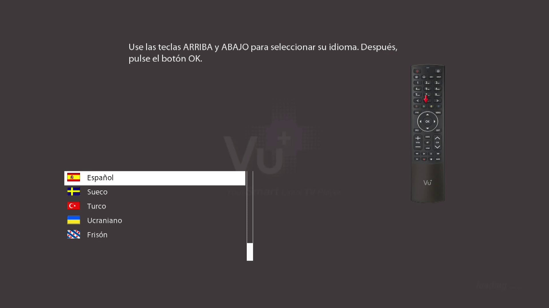 Conectamos el Vu+ Duo 4K SE al adaptador de corriente y tras pulsar el boton power trasero se inicia el receptor apareciendo durante el proceso de inicio logo a color en la pantalla vfd iluminandose los botones tactiles, este proceso dura aproximadamente 50 segundos hasta que comienza la configuracion basica de la imagen enigma2 por defecto que en este caso es code Vuplus imagen oficial de Vuplus. El sistema se mueve de forma fluida, uno de los mas rapidos que hemos podido probar gracias a su cpu broadcom de 4 nucles y a sus 3 GB de ram.