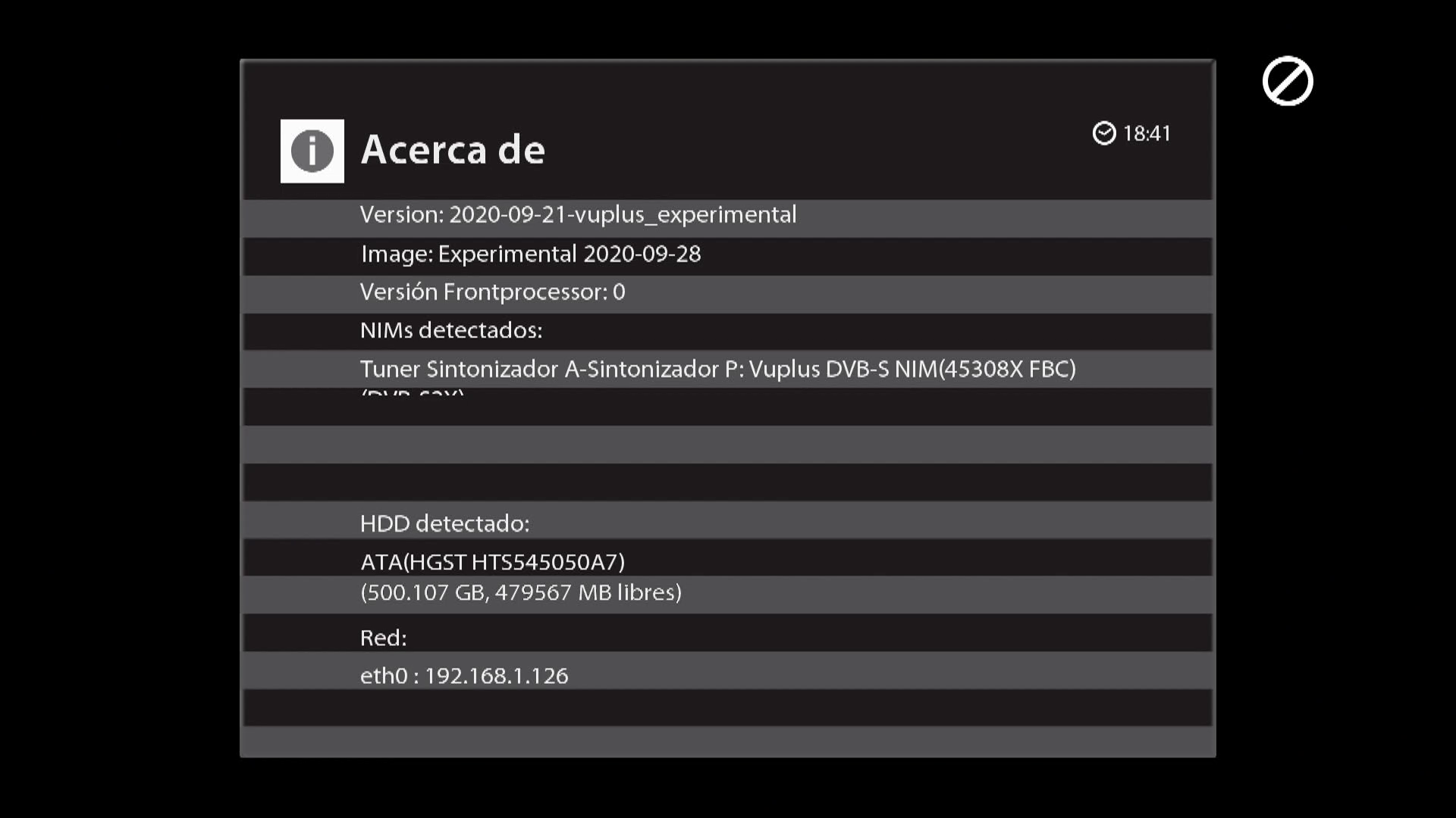 - Version del sistema de fabrica: Code Vuplus fecha depende de la fabricacion.