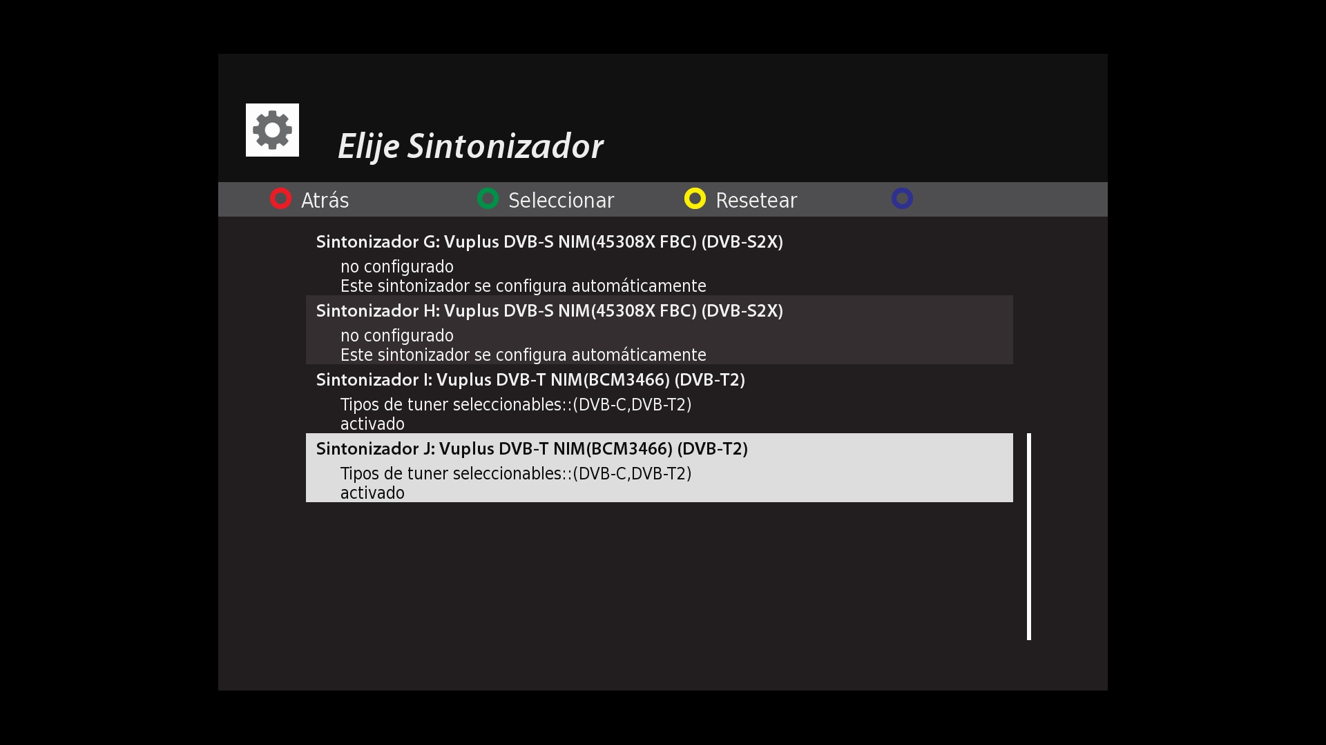 Una vez realizada la instalacion debemos realizar un reinicio completo del receptor y ahora nos apareceran dos tuner TDT:
