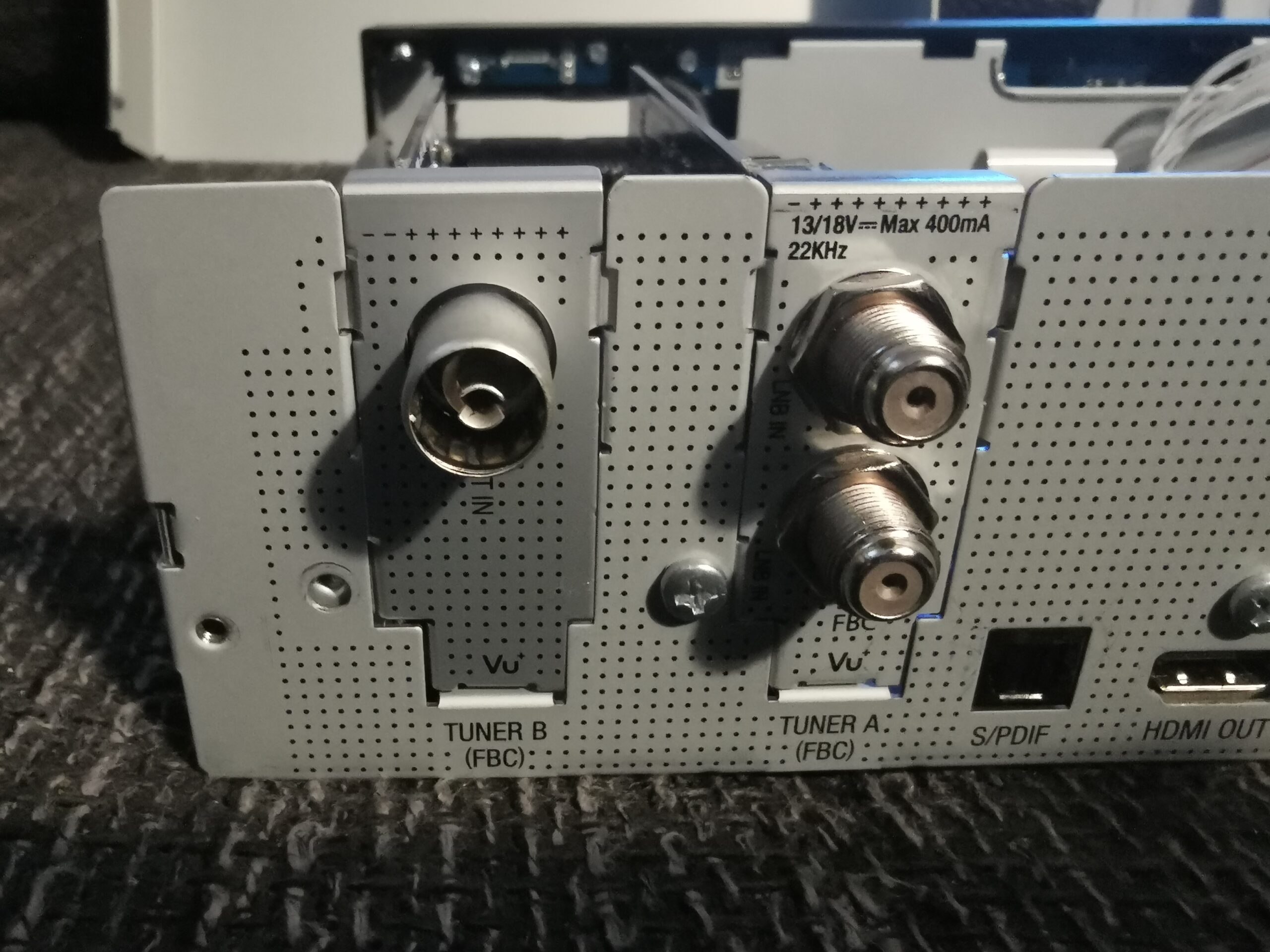 - Tuner input / output: IEC connector