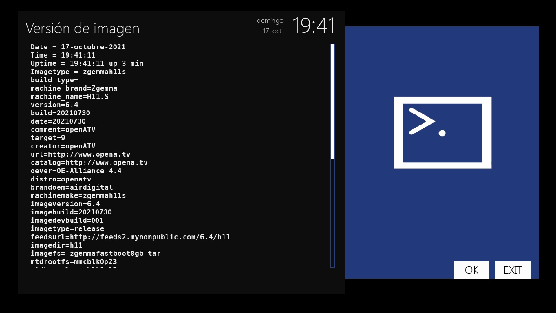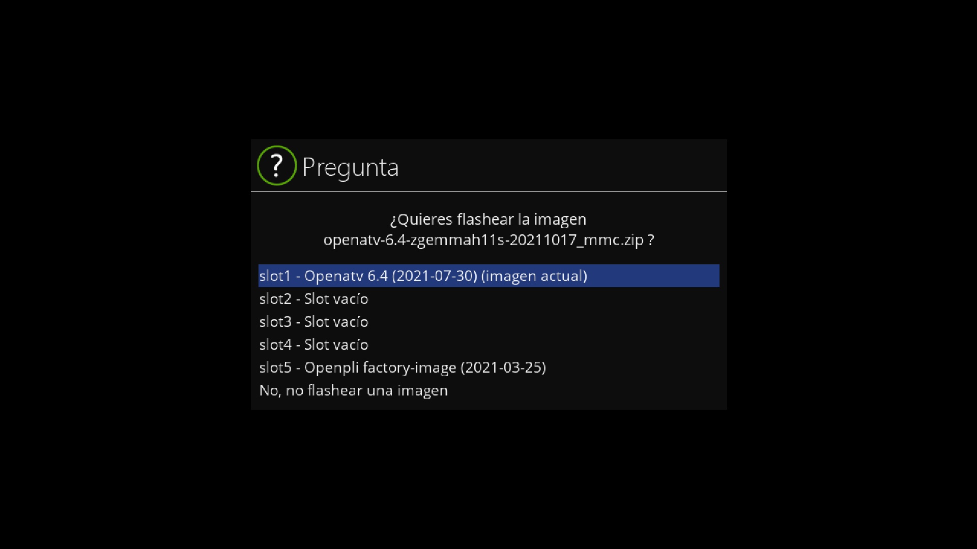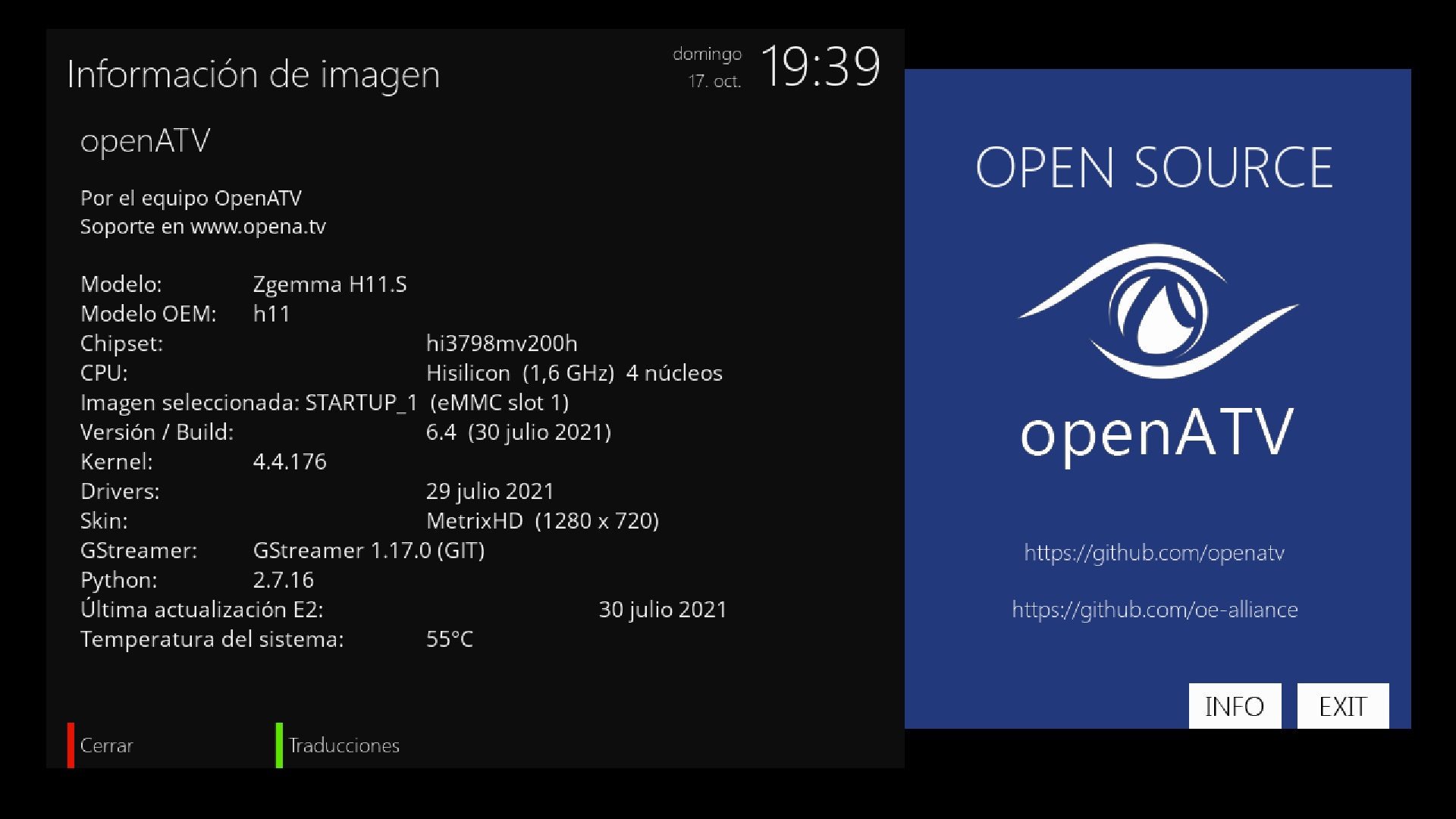 - Version del sistema de fabrica: OpenATV fecha depende de la fabricacion.