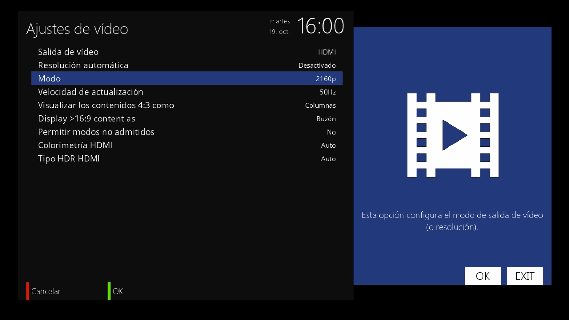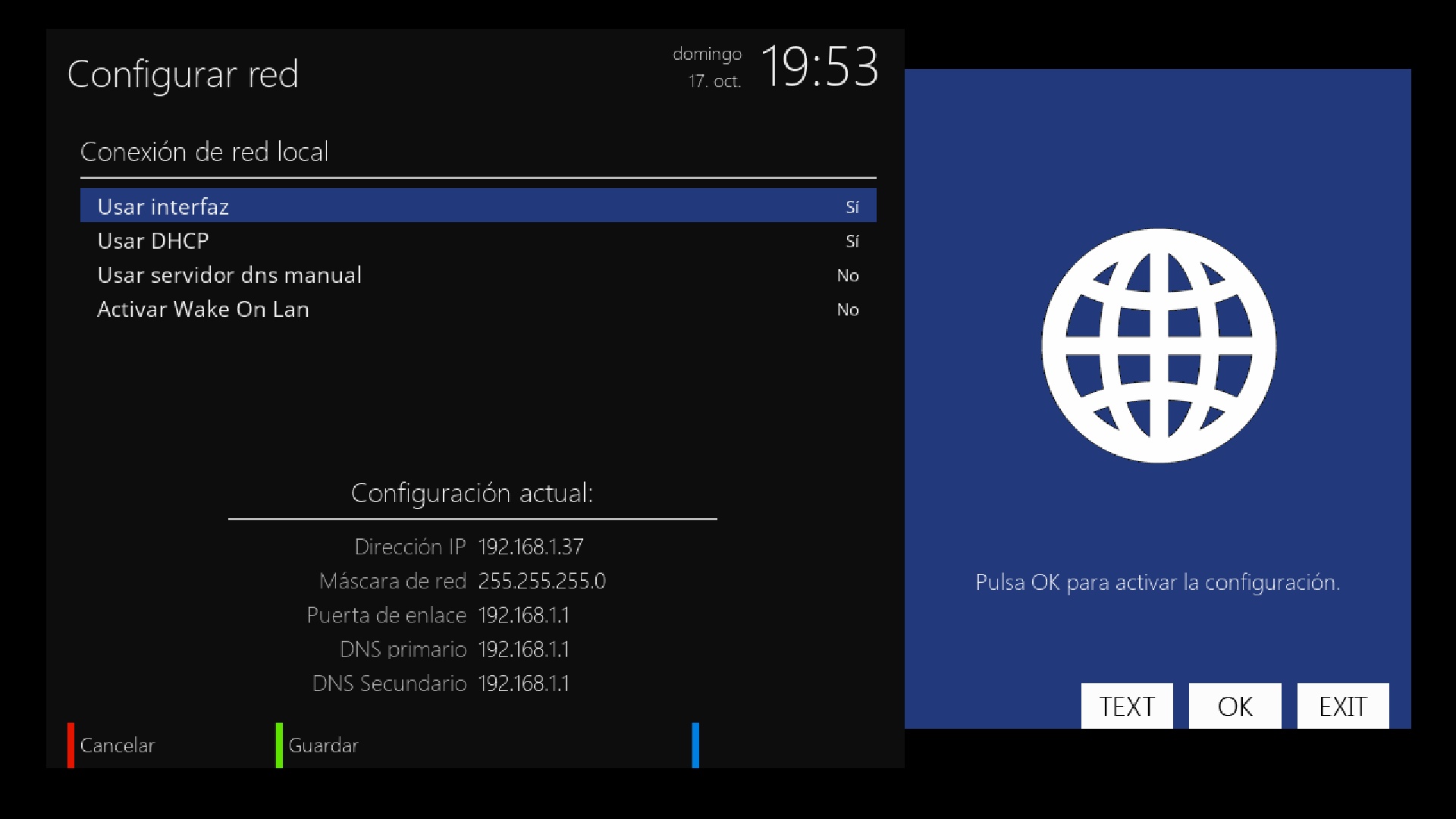 Capturas de menu de configuracion tuner