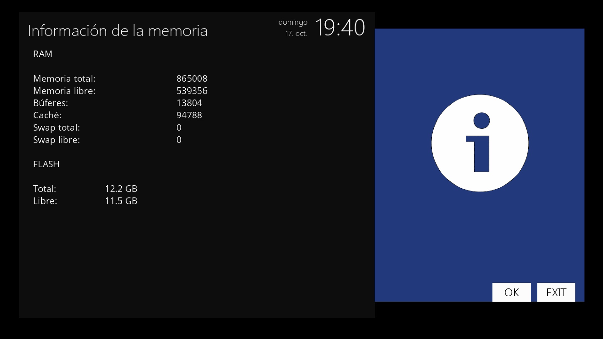 El sistema Enigma2 Reserva parte de los 1 gb de ram para sus procesos internos , por lo que al final libres de ram tendremos rondando los 525 megas.