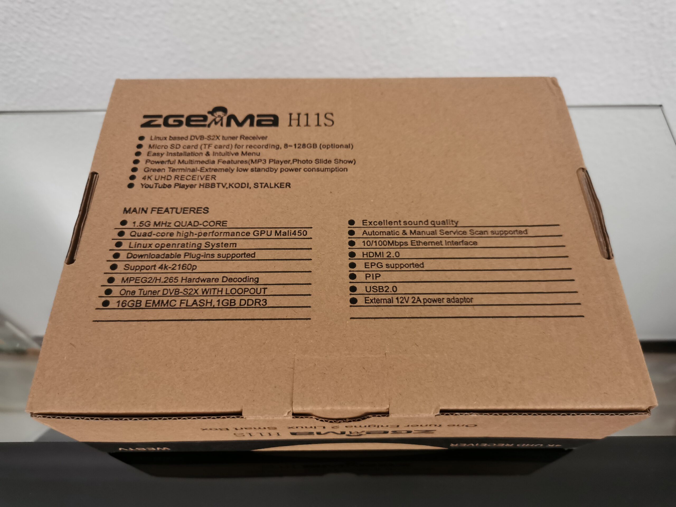 Zgemma H11S se presenta en una caja de carton tipica de Air Digital, color en tono carton, donde aparece serigrafiado modelo receptor y sus caracteristicas:
