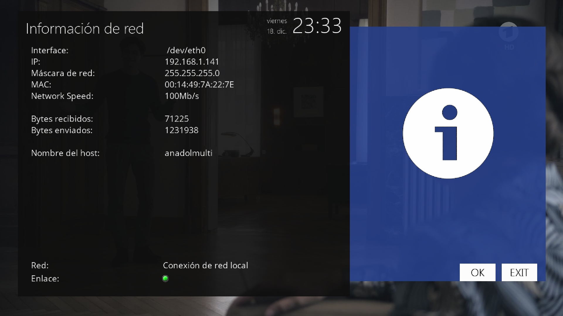 Realizamos nuestra pruebas de reproducción de vídeo sobre el receptor Anadol Multibox Twin 4K, con el procesador de video compatible con la mayoría de formatos de vídeo modernos y soporta modos HDR10 y DOLBY VISION. Como vemos el rendimiento es excelente y la calidad de imagen es de muy alto nivel.