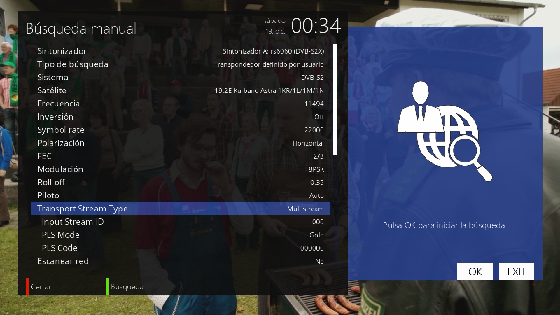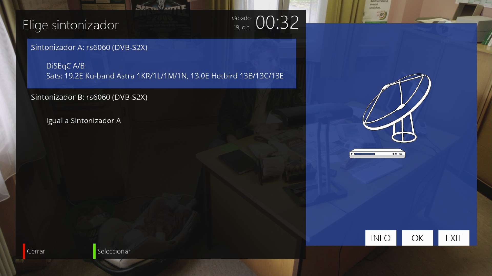 El sintonizador satelite es el modelo rs6060 DVB-S2X que permite captar canales tanto multistream, S2X y T2mi