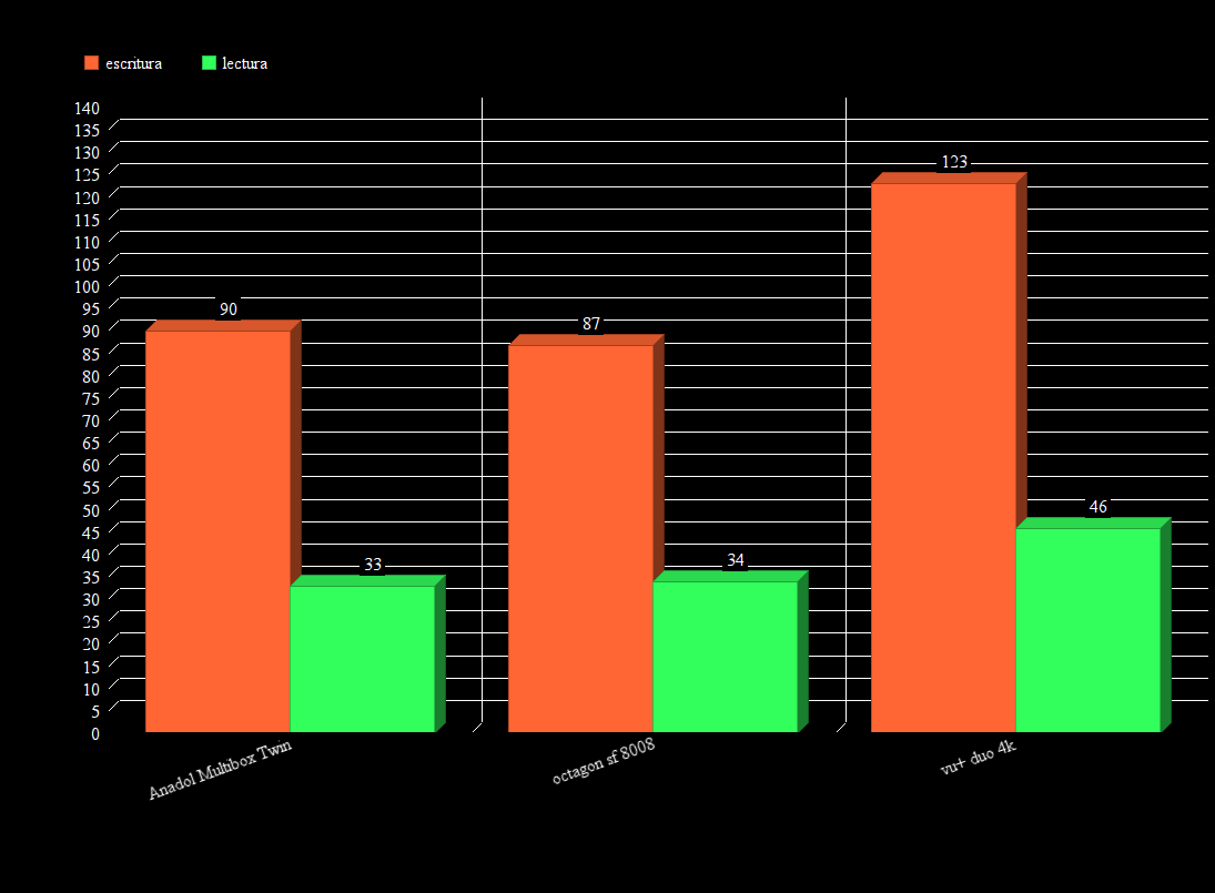 Leer y escribir 17/15 mb/s 23/18 mb/s – –
