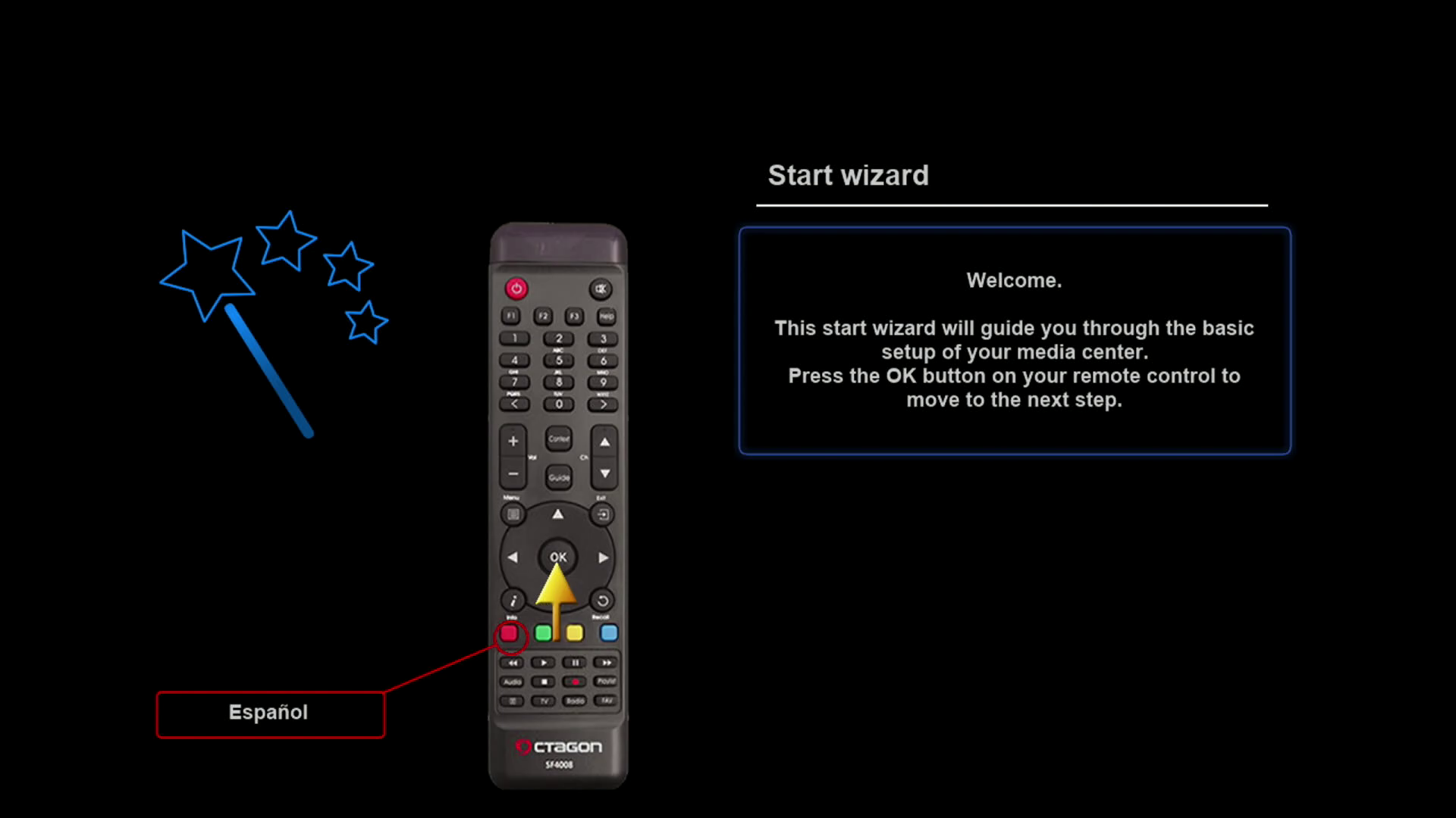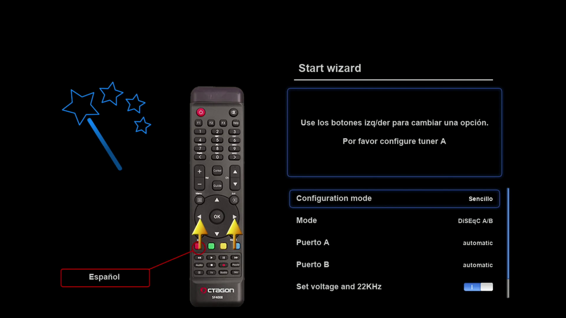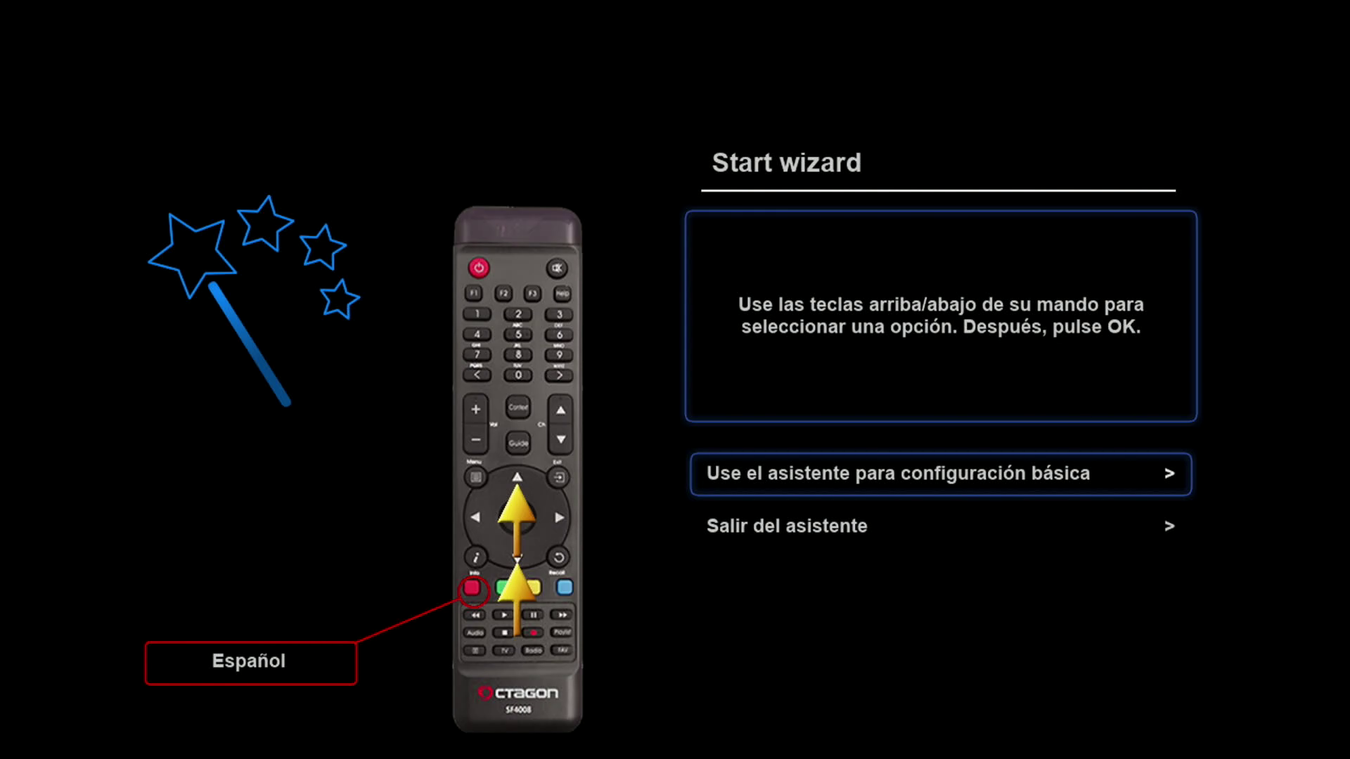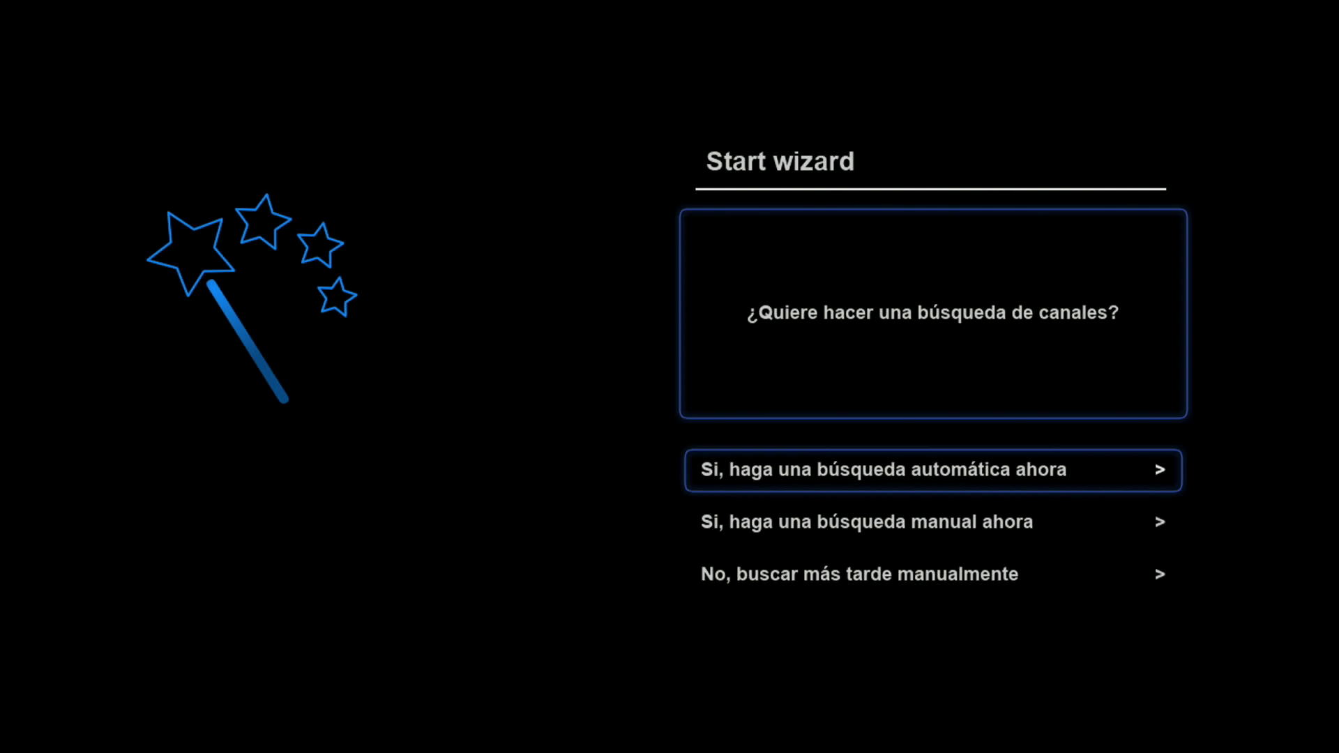 Tras realizar la primera instalación de rudream, nuestro receptor arrancara con un wizard de configuracion, para realizar una primera configuracion básica del mismo (las configuraciones realizadas, si queremos pueden ser modificadas posteriormente en los distintos menus de la imagen)