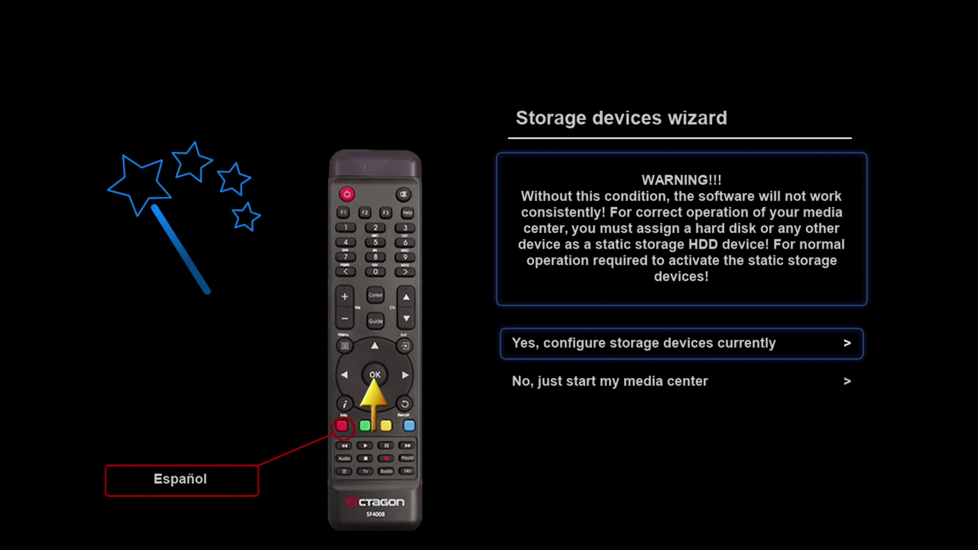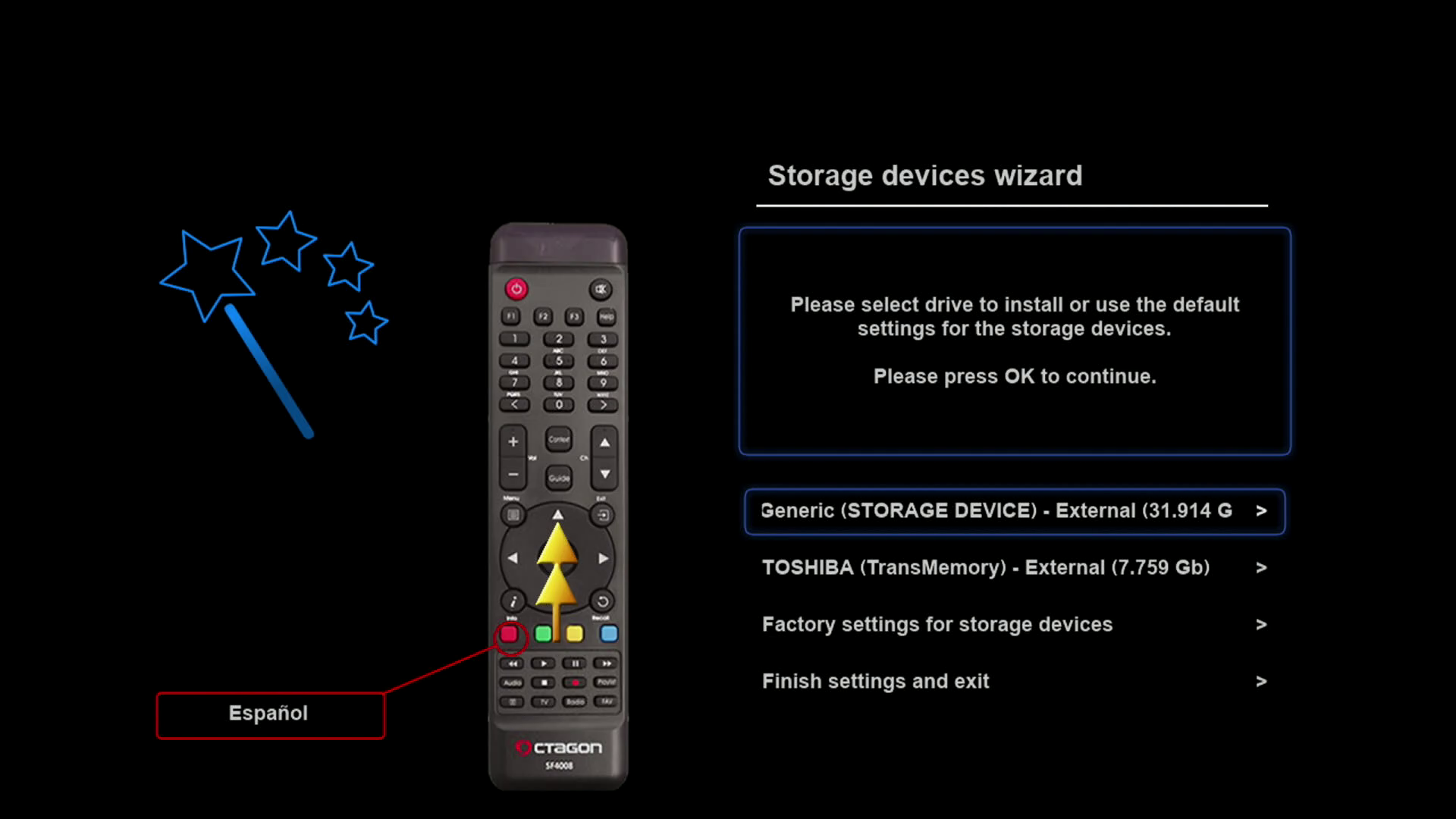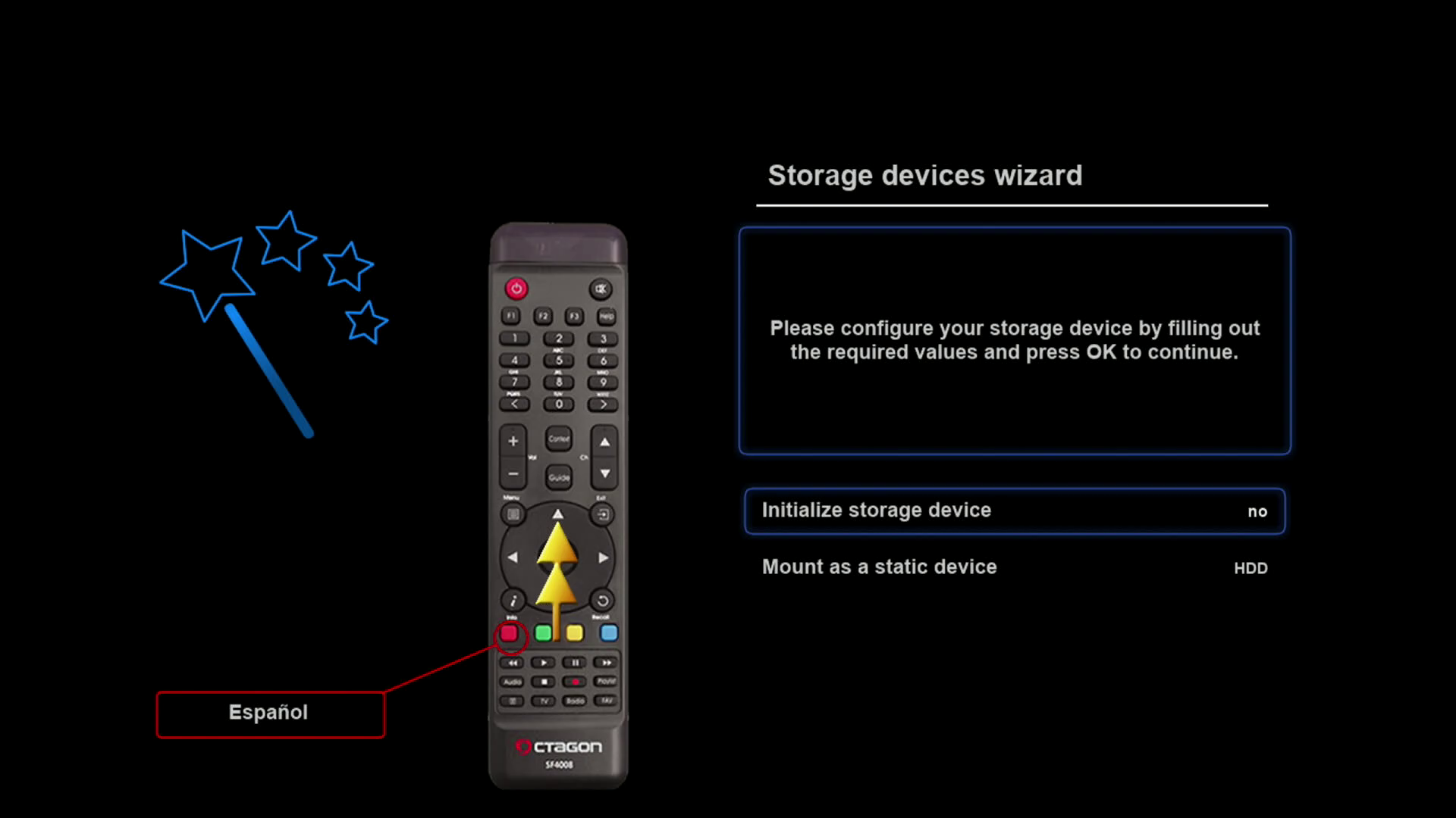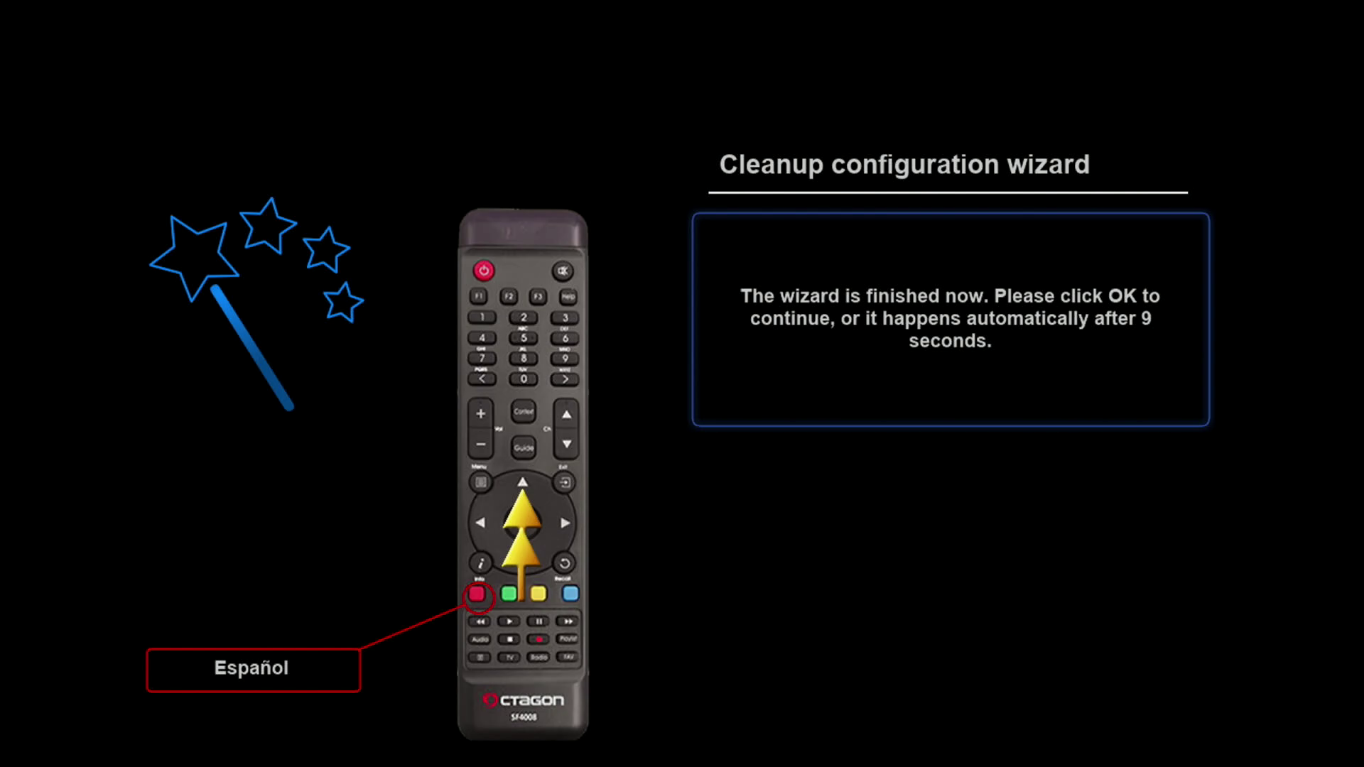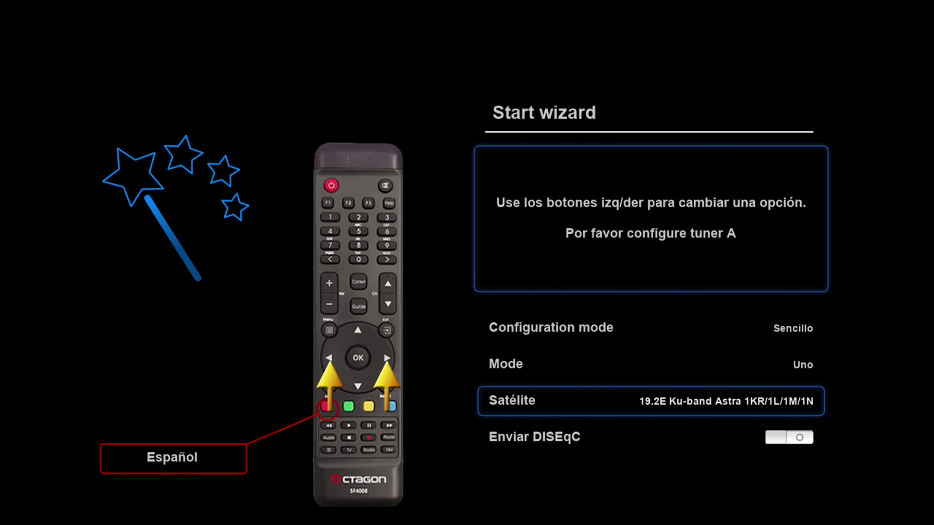 Tras realizar la primera instalación de rudream, nuestro receptor arrancara con un wizard de configuracion, para realizar una primera configuracion básica del mismo (las configuraciones realizadas, si queremos pueden ser modificadas posteriormente en los distintos menus de la imagen)