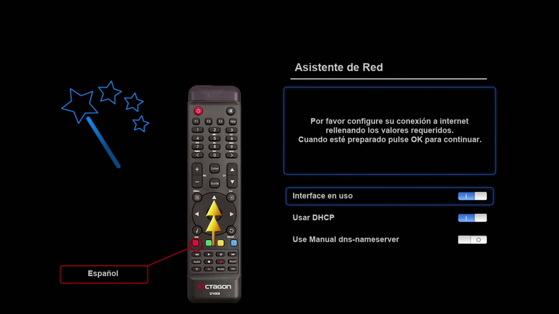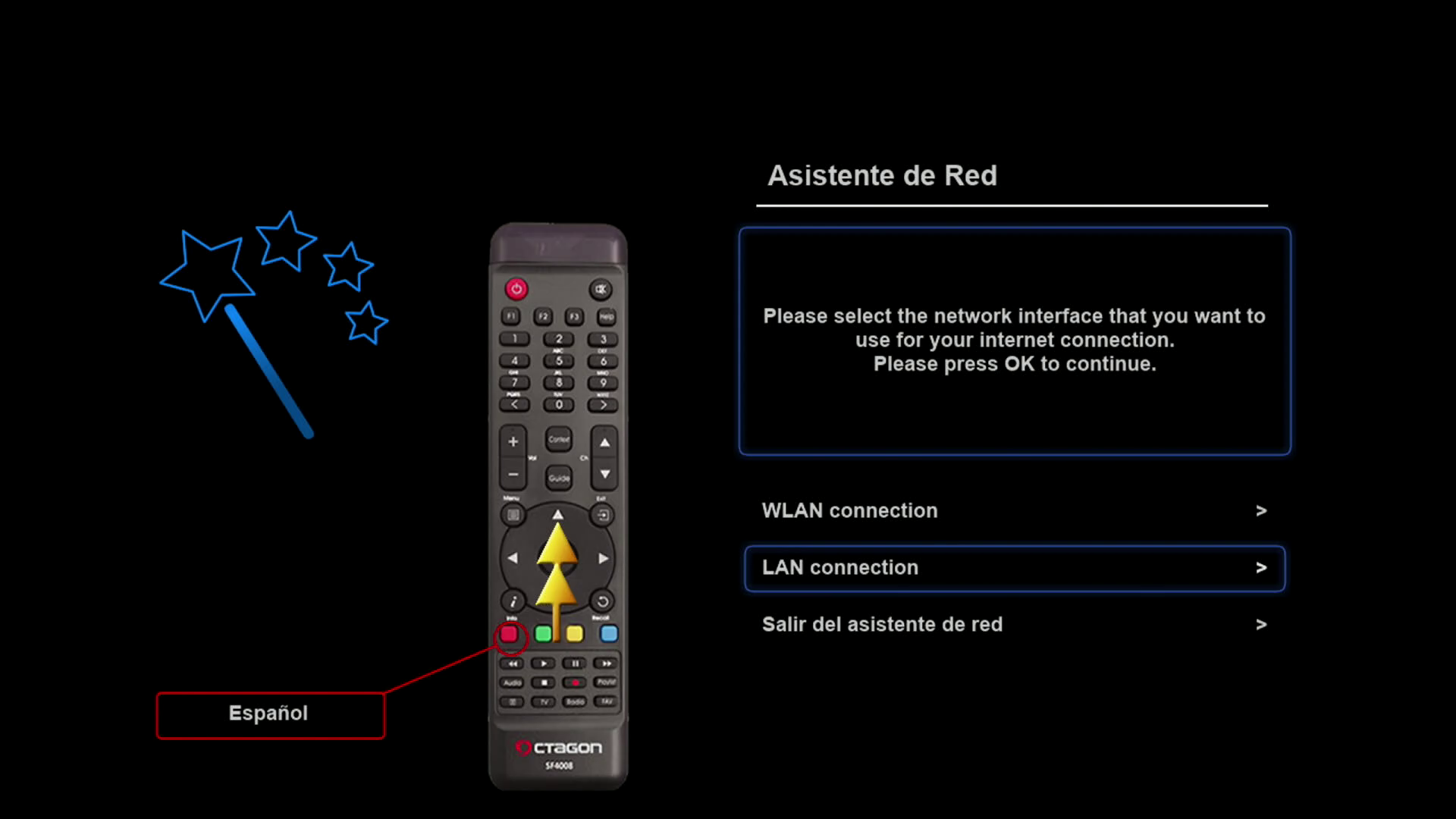 Ahora podemos realizar la conexión de nuestro receptor a la red, es decir tanto la conexión a la red local como acceso a internet.