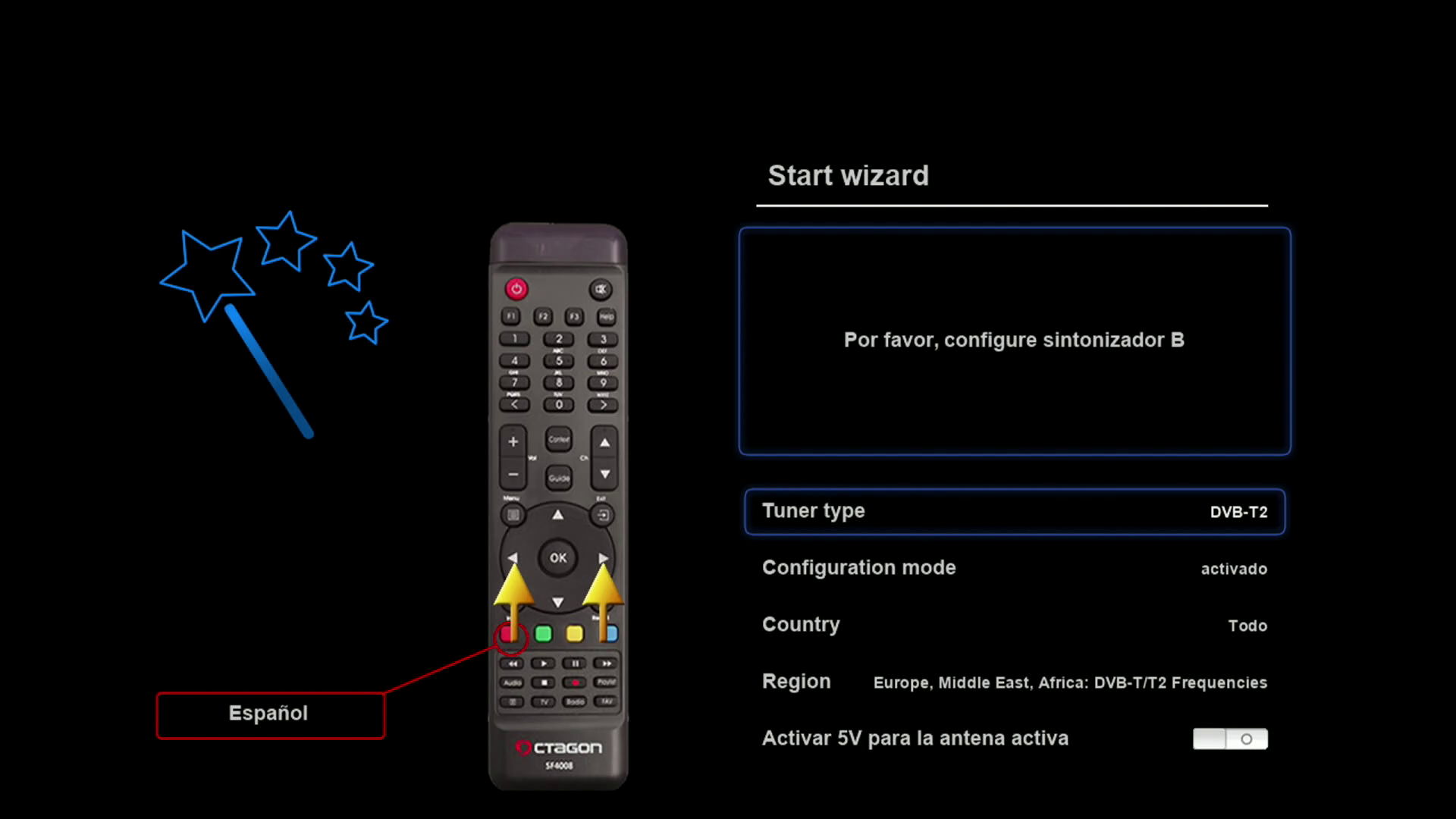 Una vez configurado la conexión de red, se inicia el asistente de la configuracion de Antena