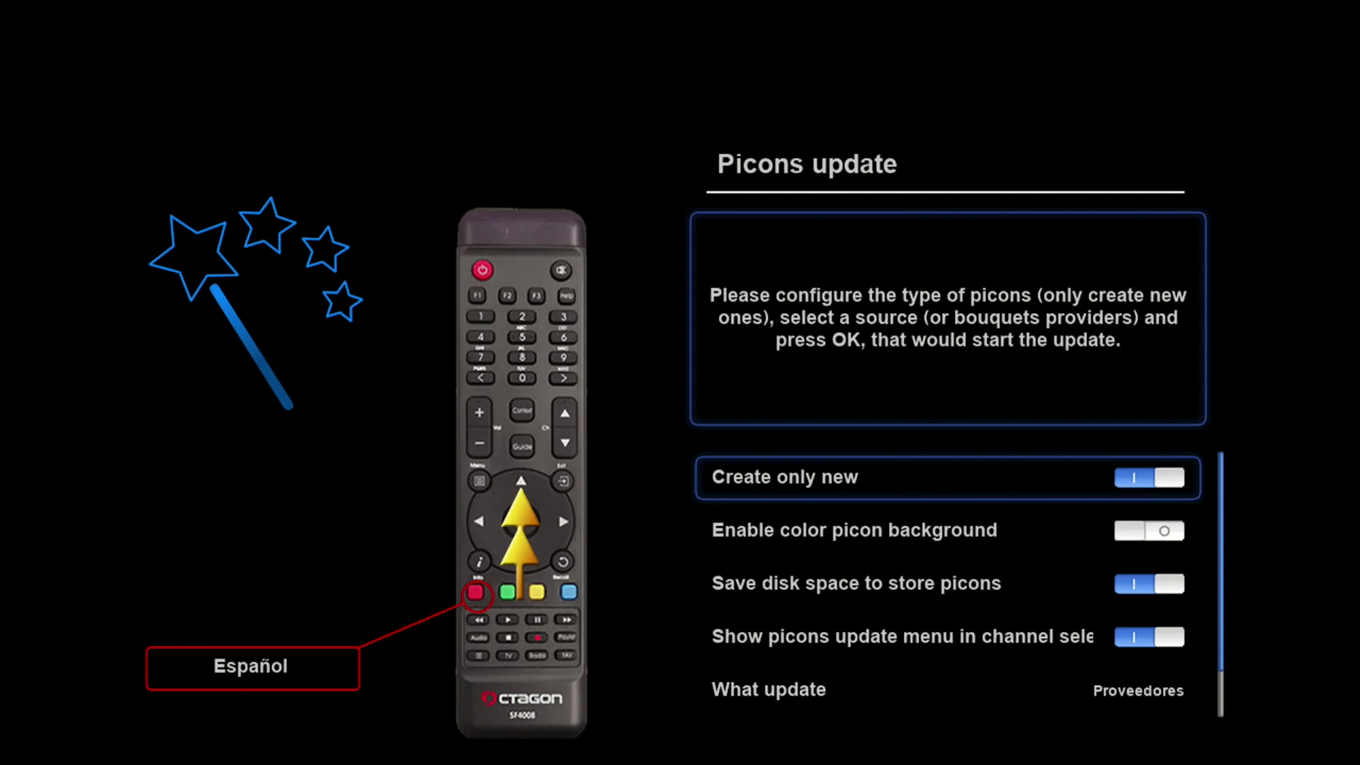 Para finalizar podemos configurar el auto update de picon y caratulas