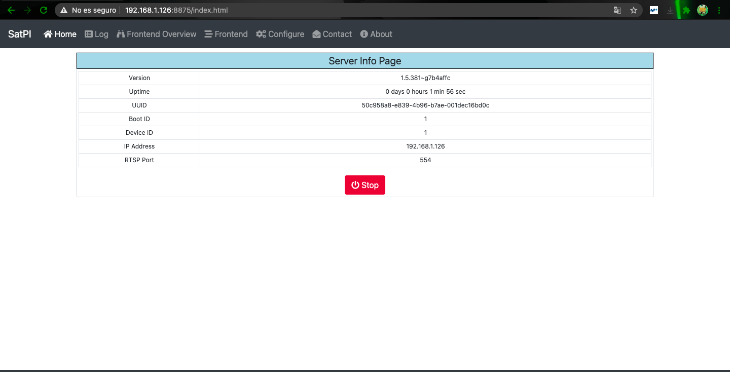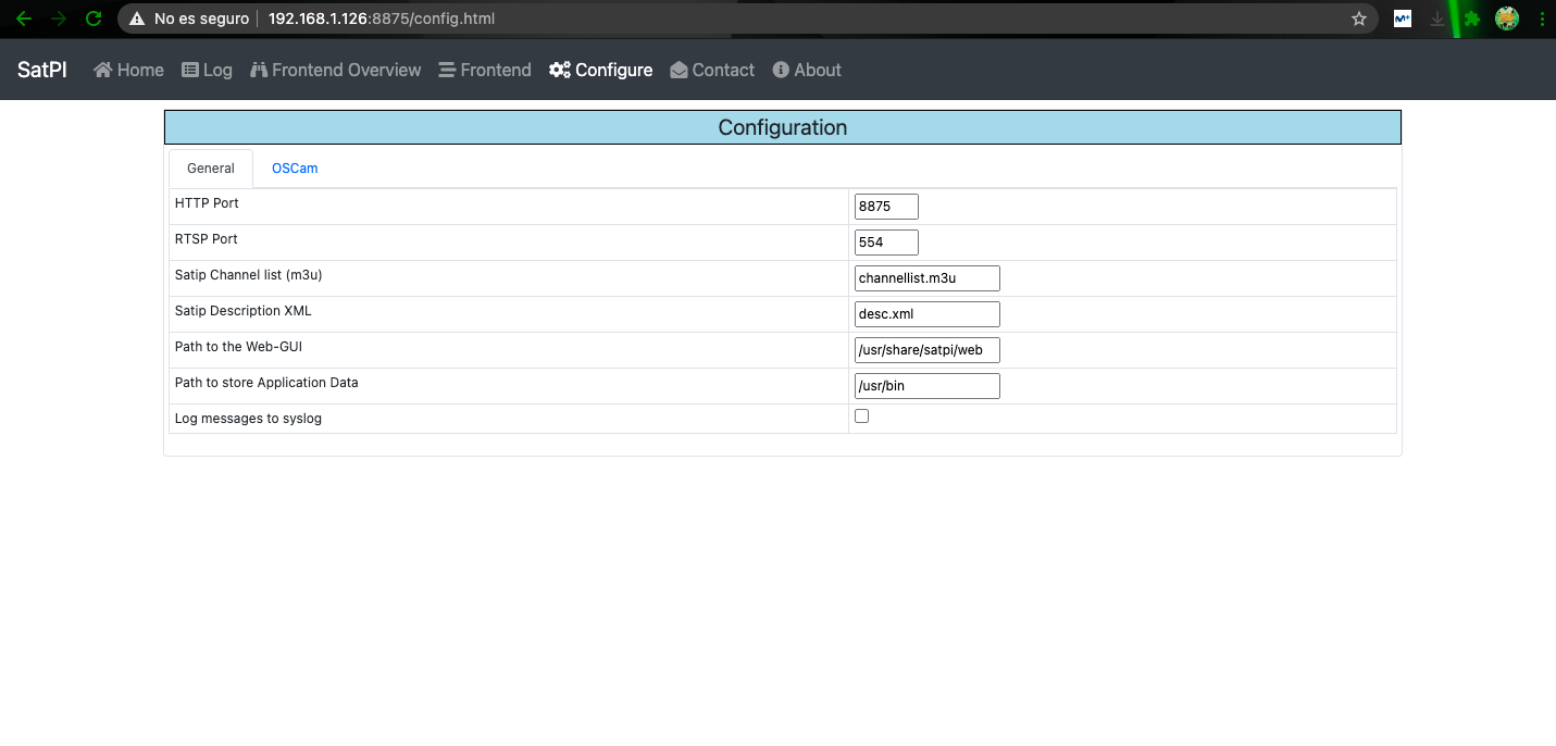 Una vez hemos instalado satpi reiniciamos el receptor, y para acceder a la webiterface del servidor Satip es: