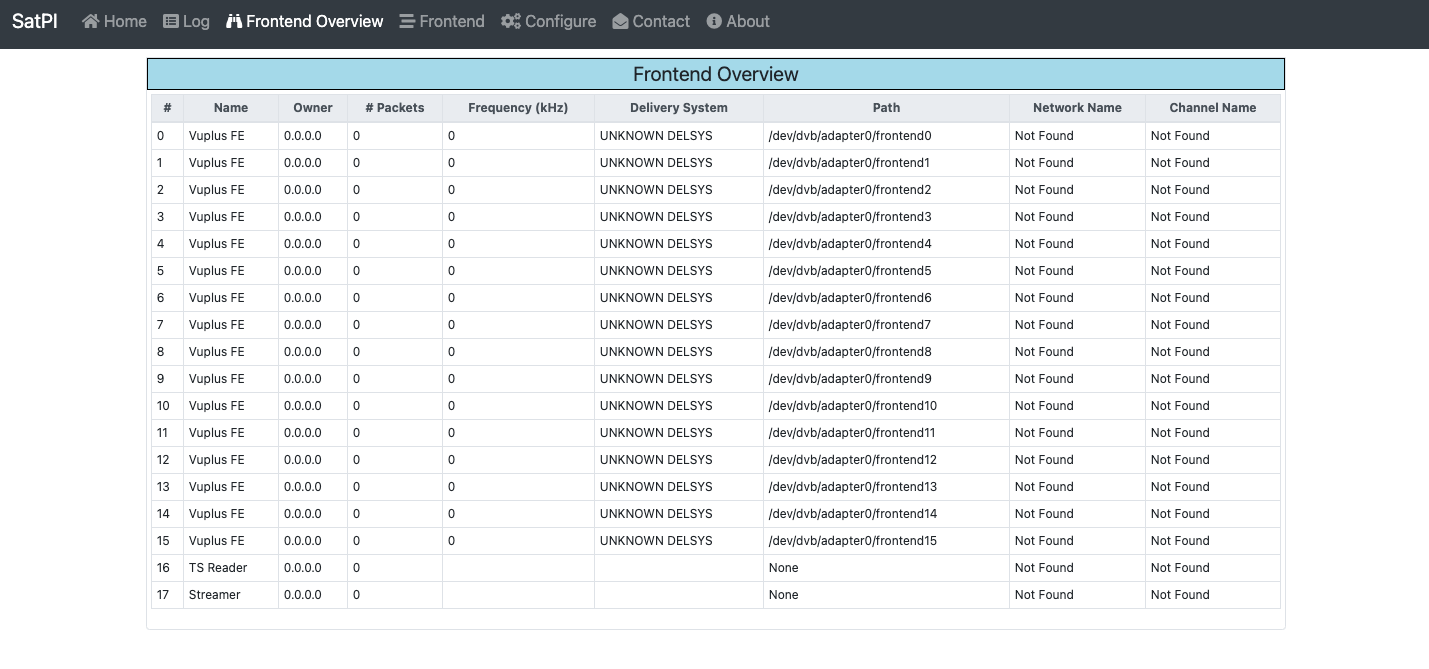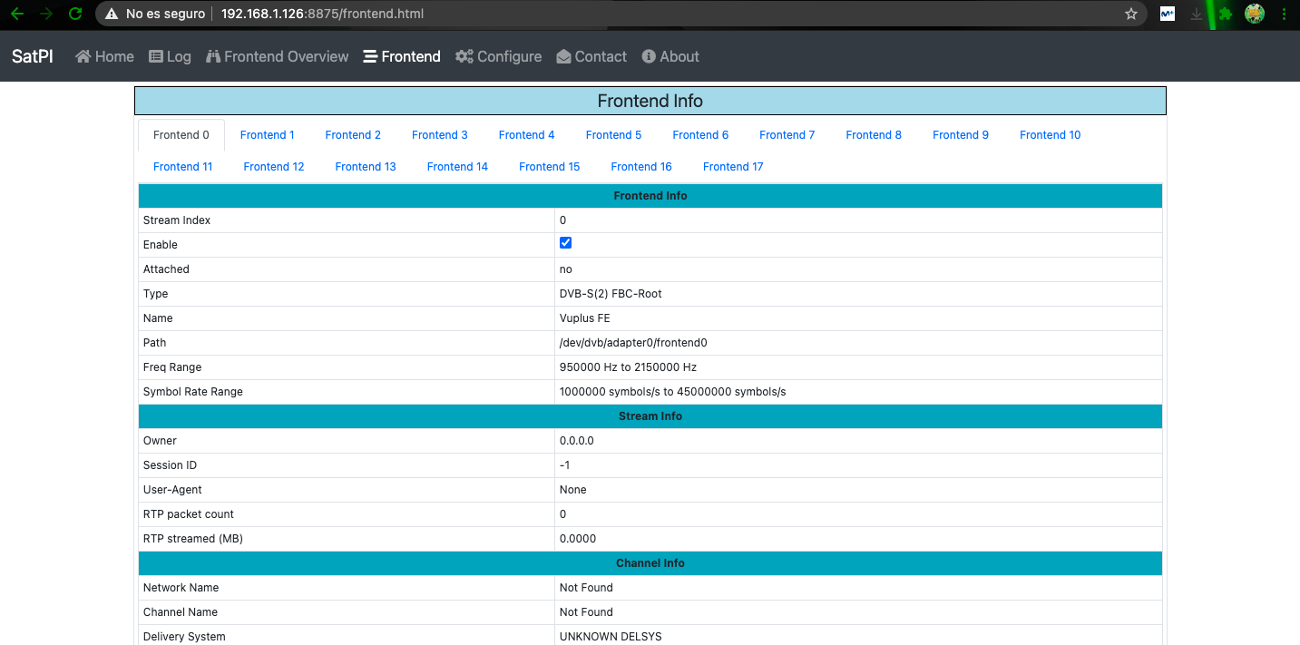 En la opcion fronted podemos configurar o habilitar cada uno de los tuner del receptor