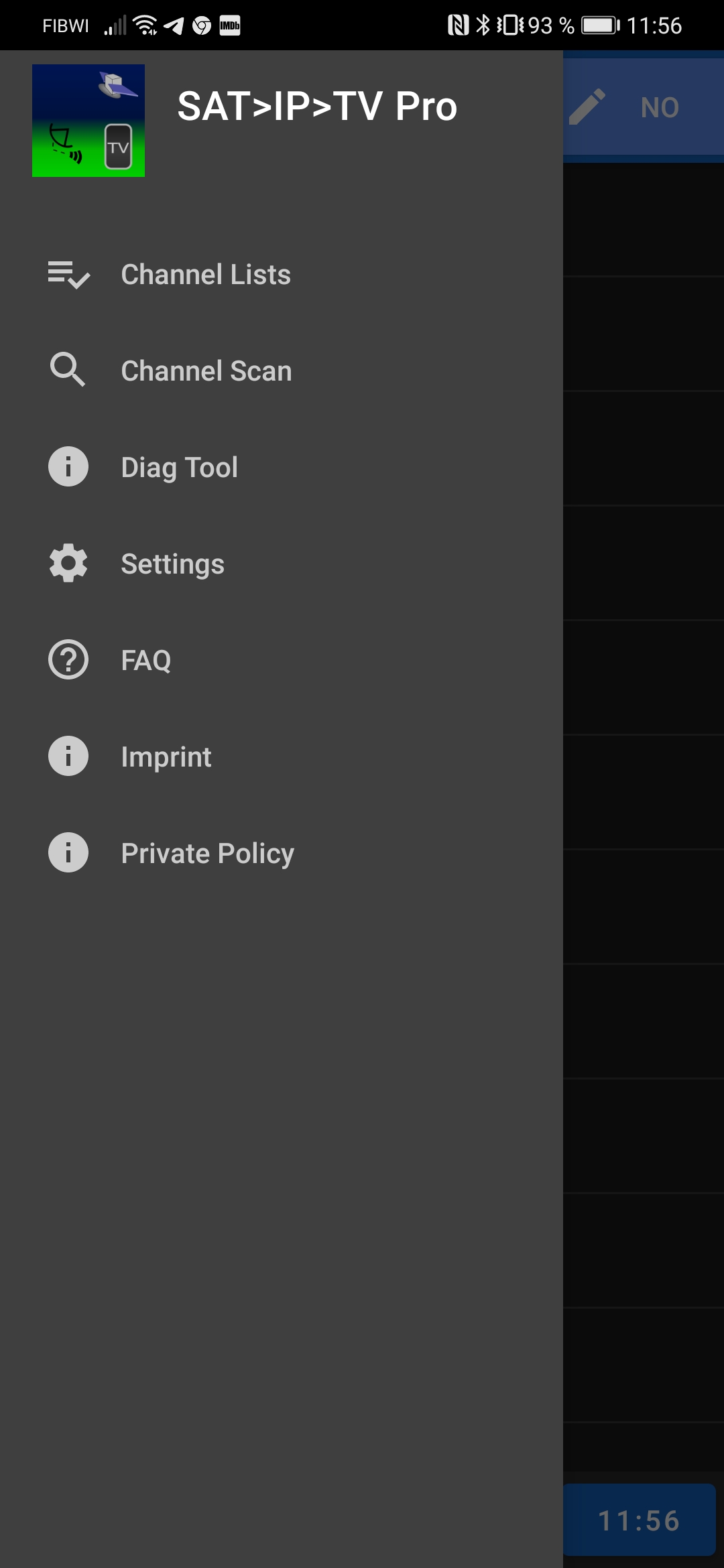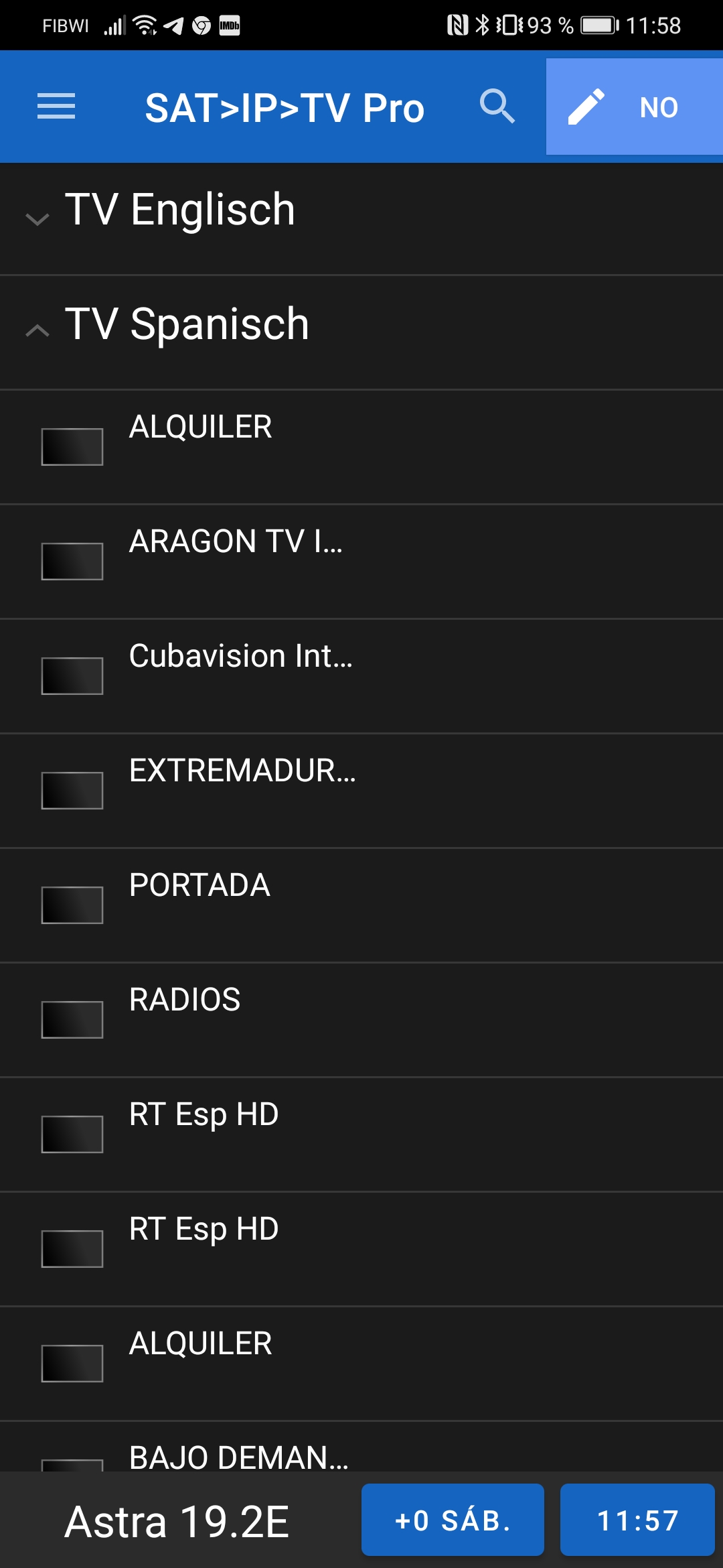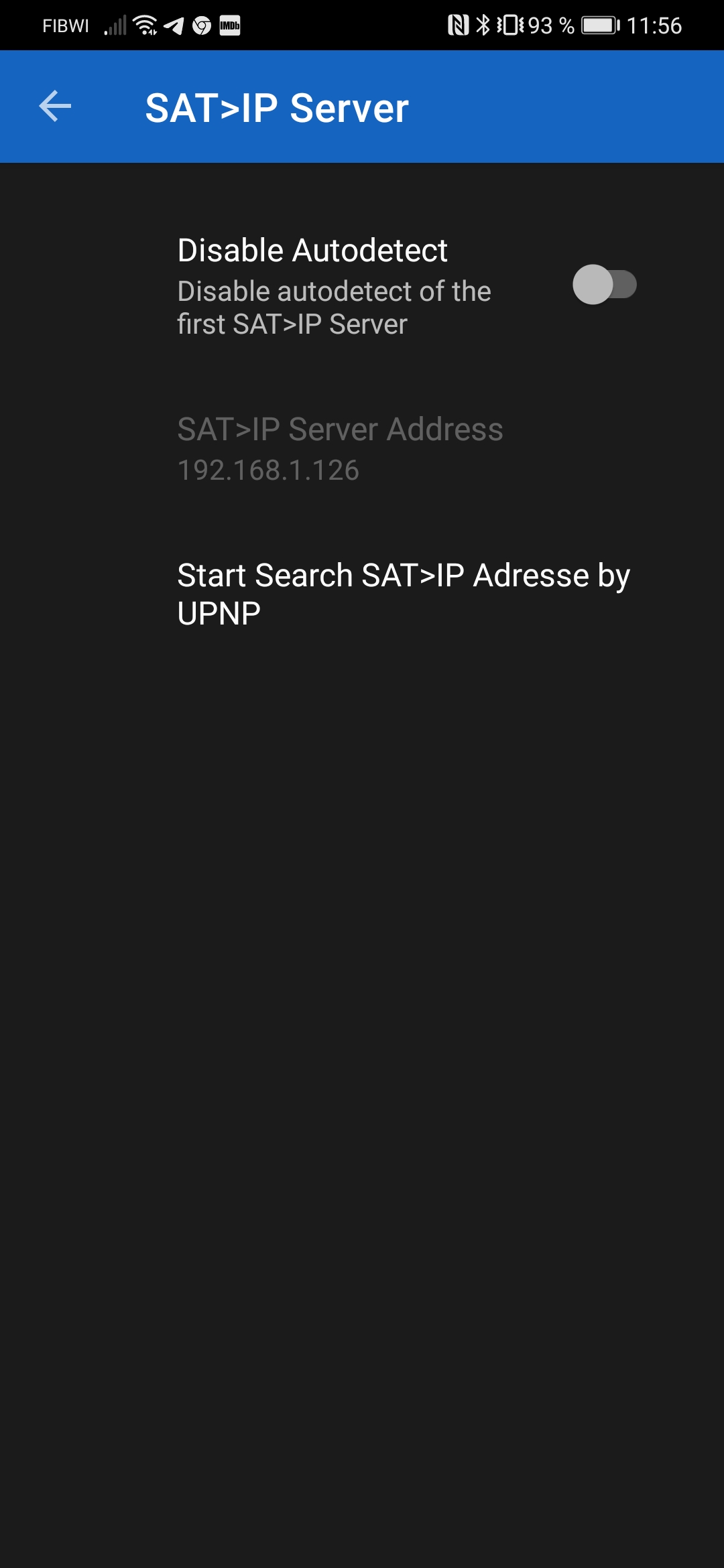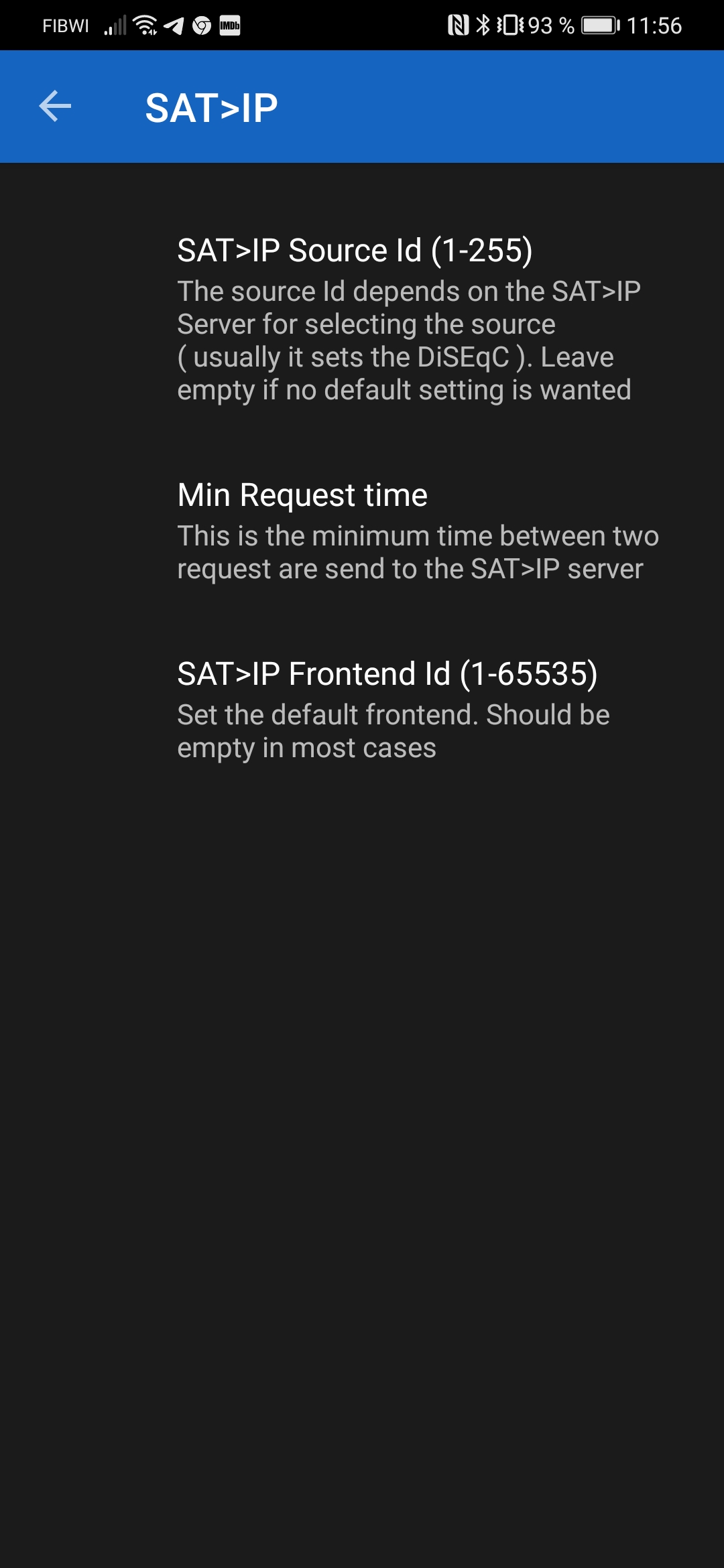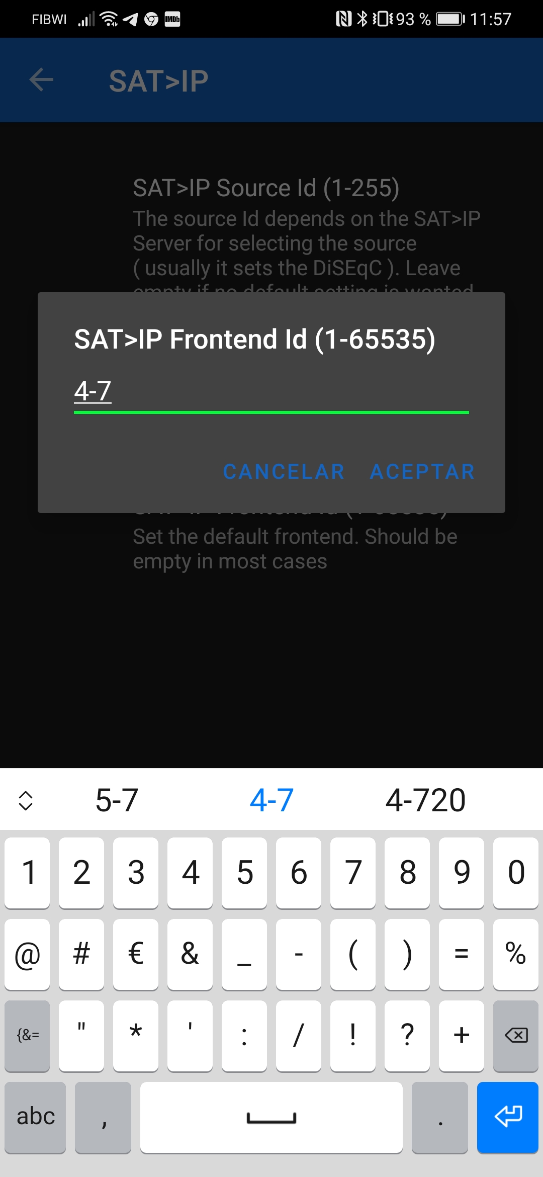 En este ejemplo usamos un cliente satip cliente para movil android y configuramos el acceso: