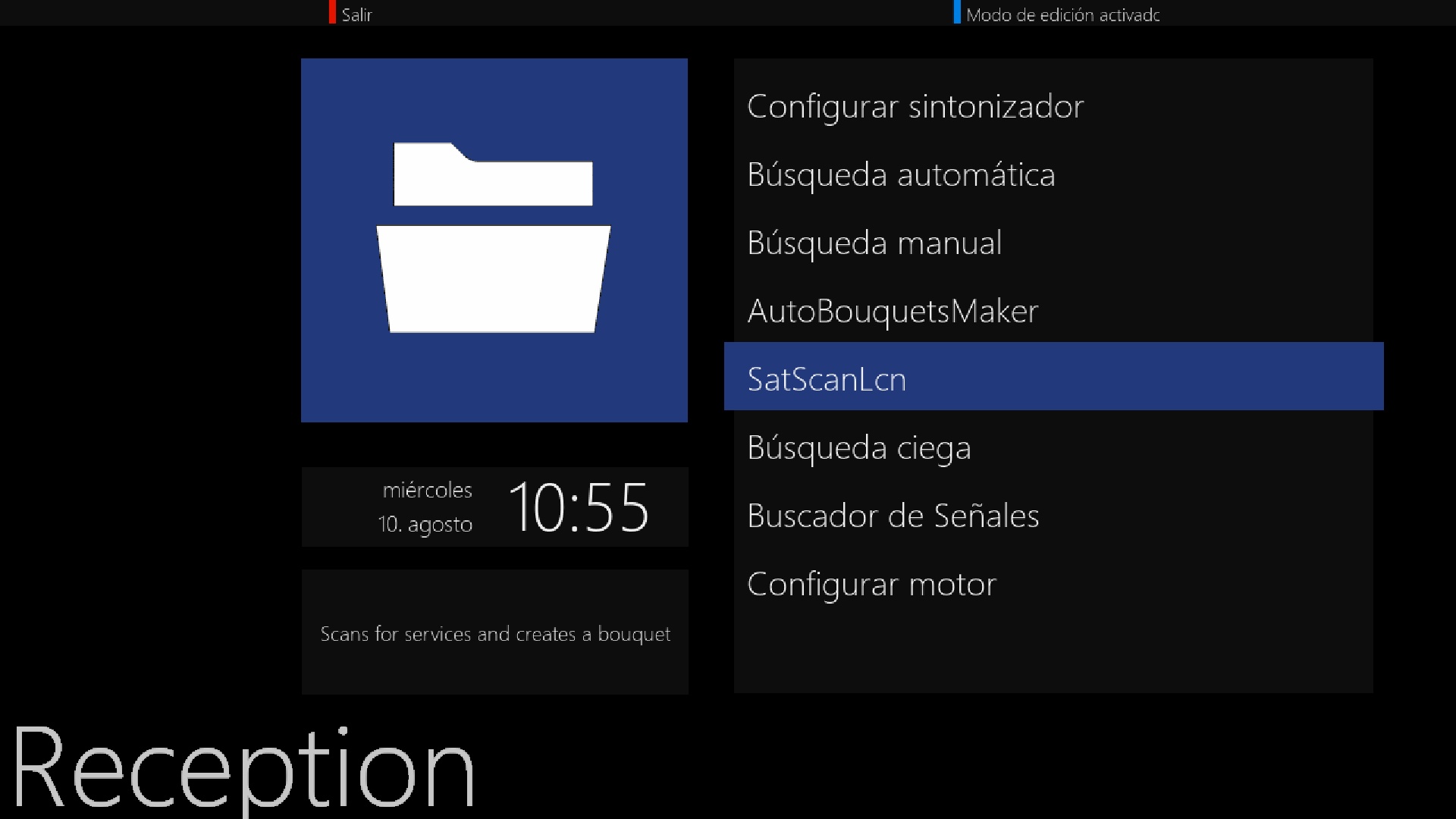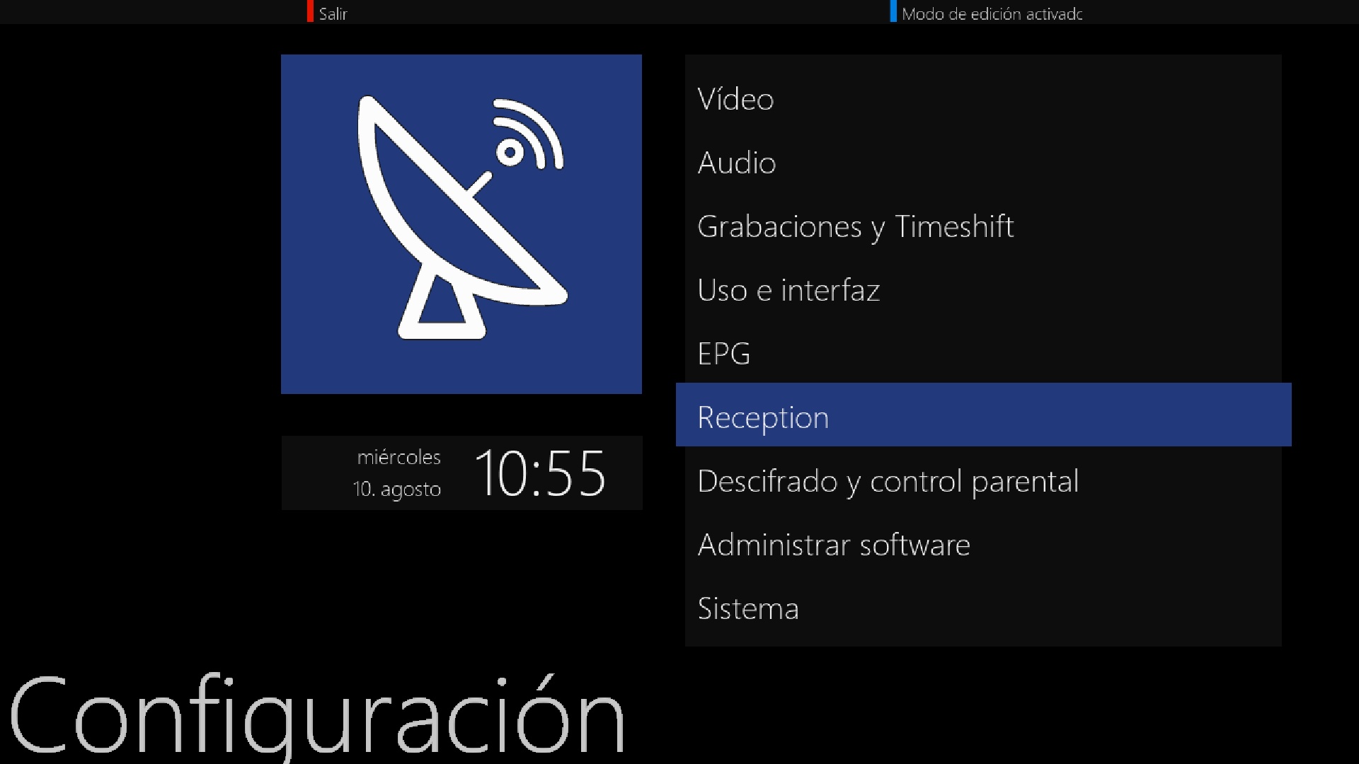 Una vez instalado pulsamos en menu + configuracion + Reception