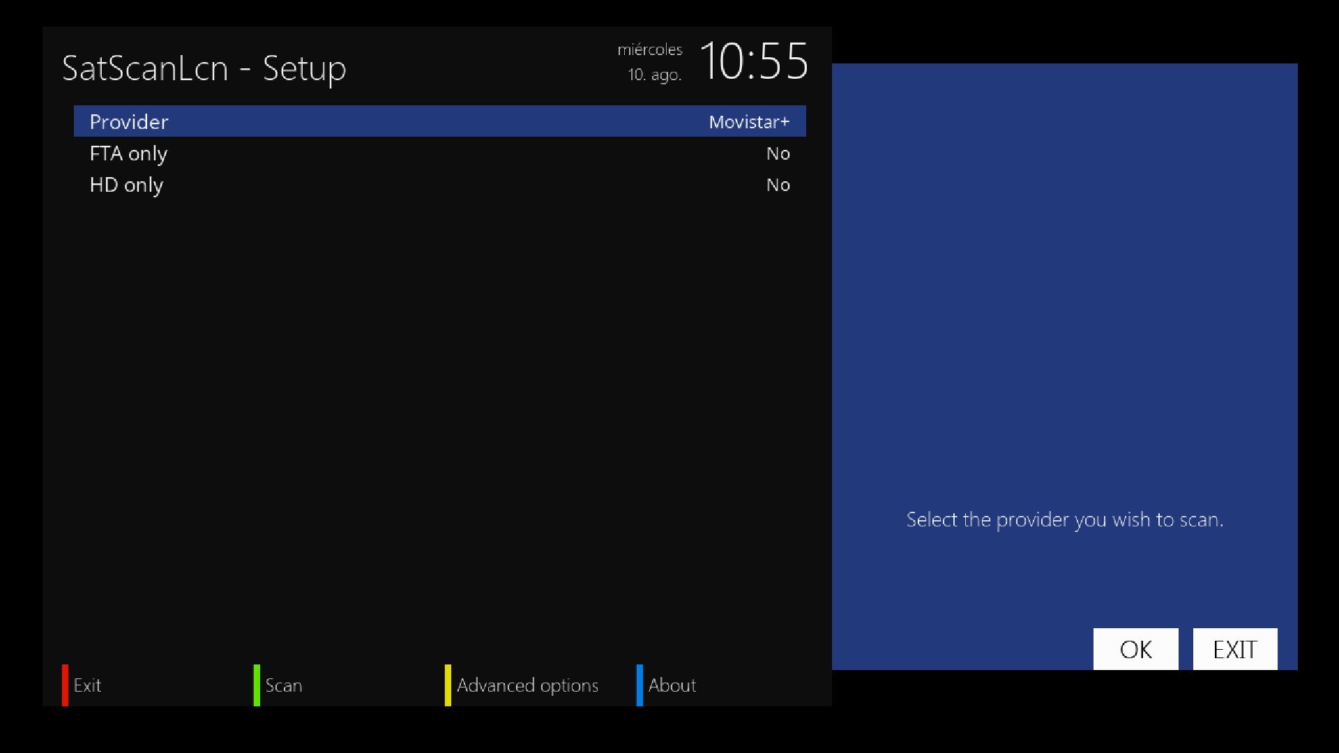 SatScanLCN es un plugin enigma2 que nos permite realizar busqueda canales por plataformas, usando las caracteristicas de los que se denomina LCN (Logical Channel Number), es decir, sirve para hacer una clasificación automática de todos nuestros canales, reordenándolos al mismo tiempo que buscamos, el orden lo coje de la informacion de los transpondedores asi como su numeracion. Por ejemplo si seleccionamos movistar+ nos buscara los canales de movistar+ en su orden y numeracion y nos creara un favorito con los mismos.