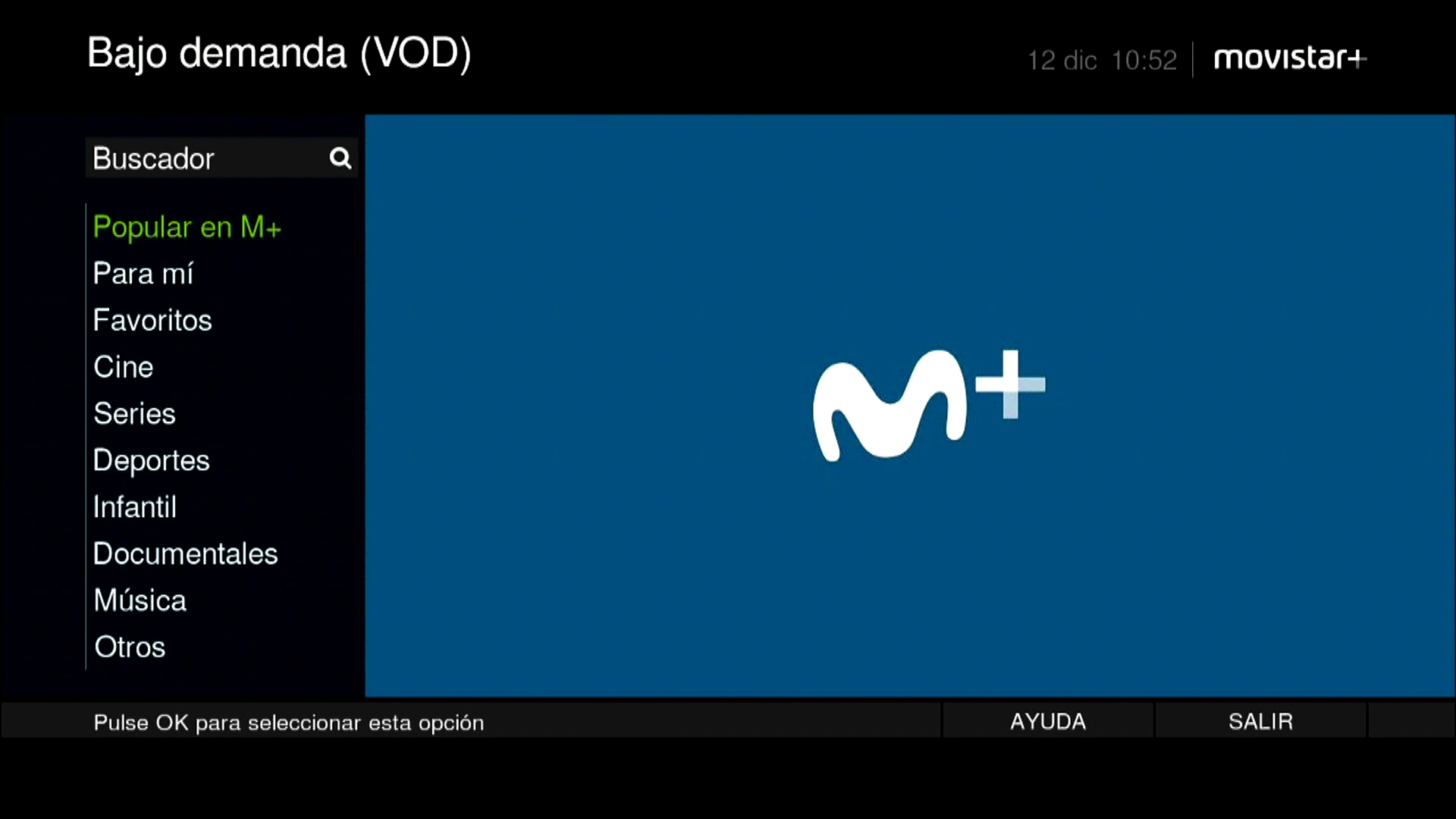 Ahora nos aparecera la interfaz grafica del servicio Baja demanda, donde podremos acceder a todo el contenido que emite Movistar+ para poder visualizarlo.