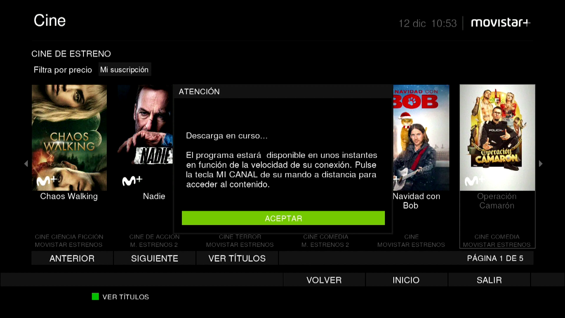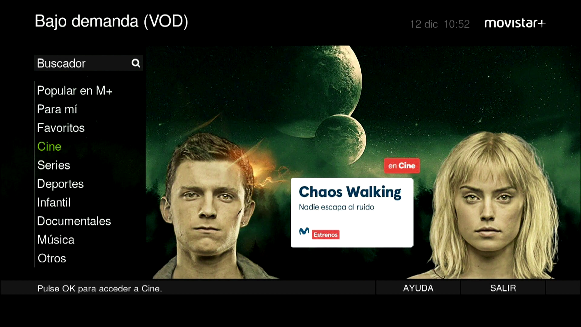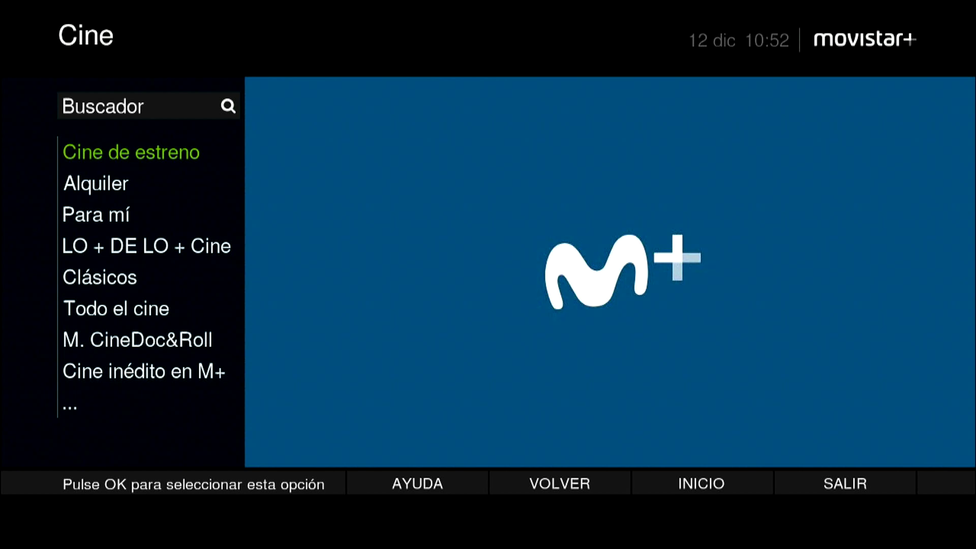 En este ejemplo, que deseamos ver una pelicula seleccionamos la categoria cine