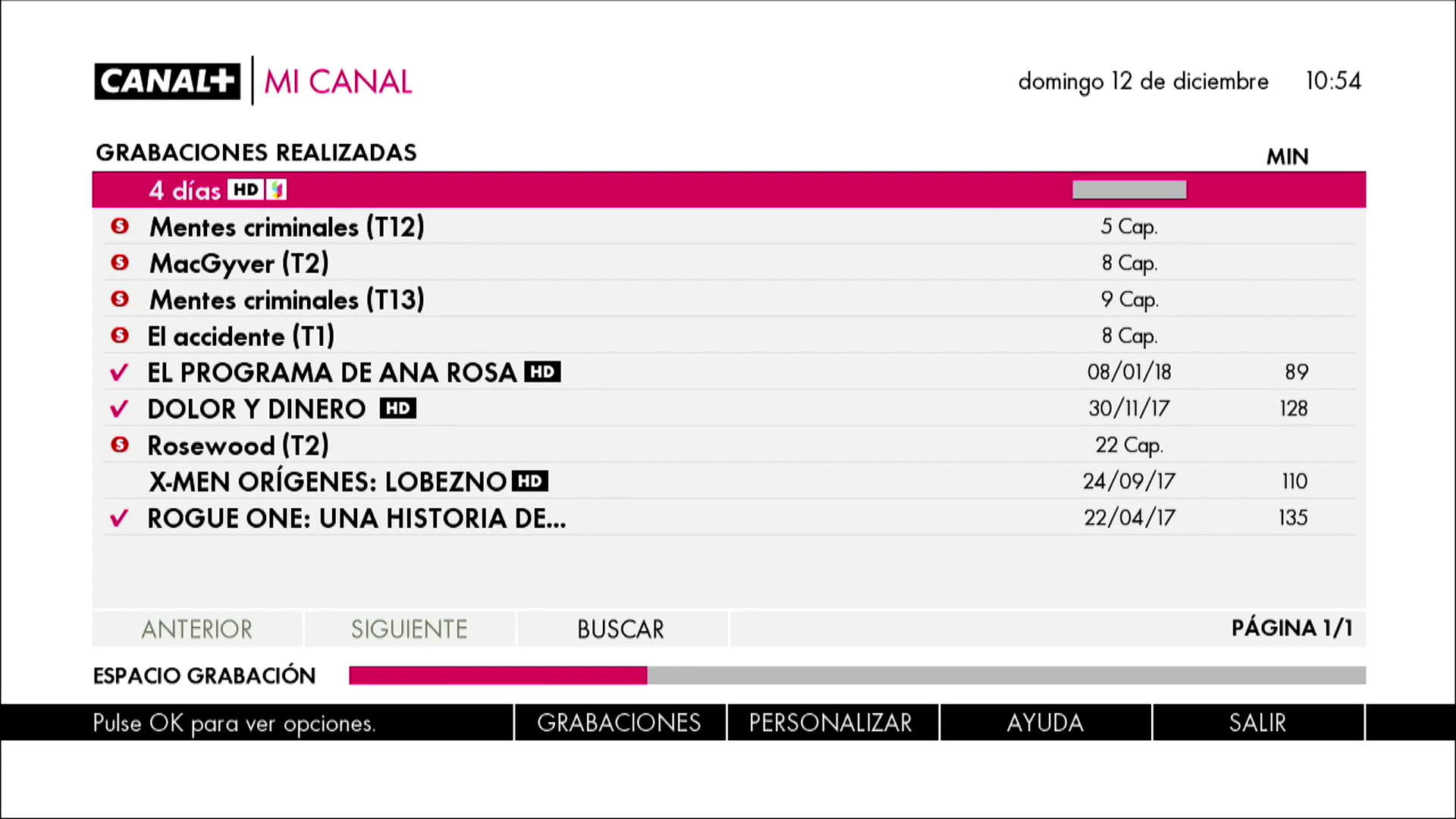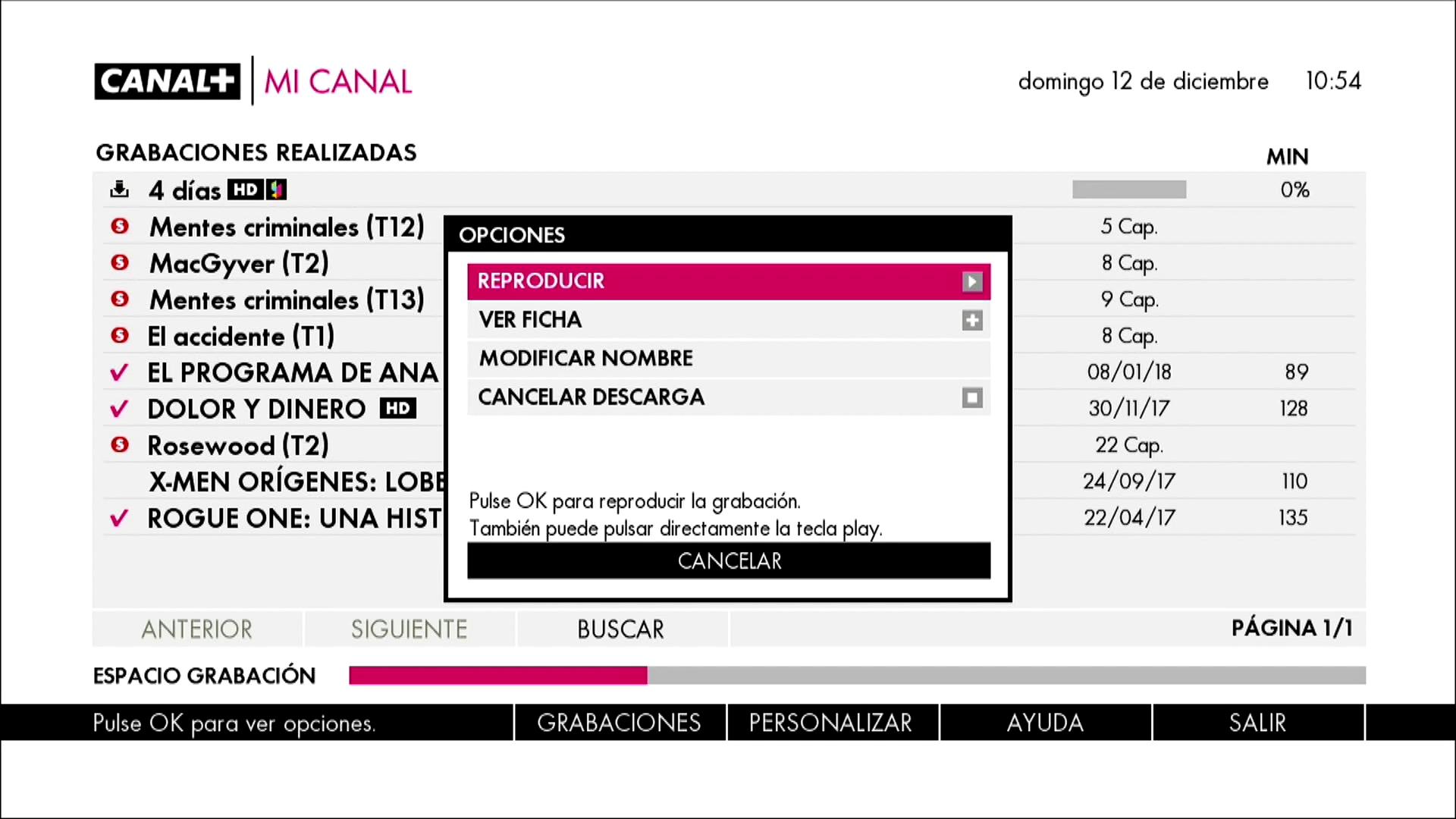 del mando a distancia y nos aparecera en las Grabaciones realizadas.