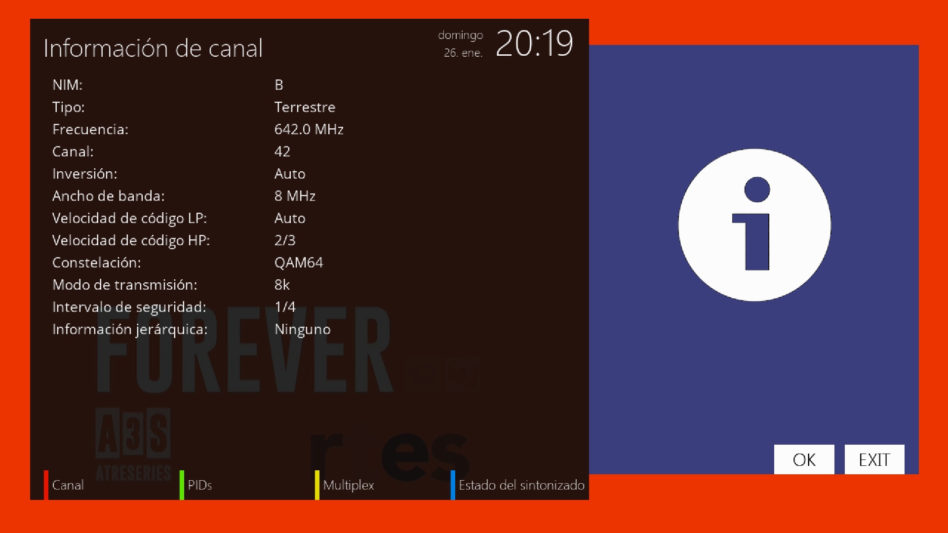 MPE5 que como vemos en la tabla actualmente usa el canal 42 y que consta de los canales atreseries HD, beMad tv hd, ten… pues buscamos canales en dicho Mux 42: