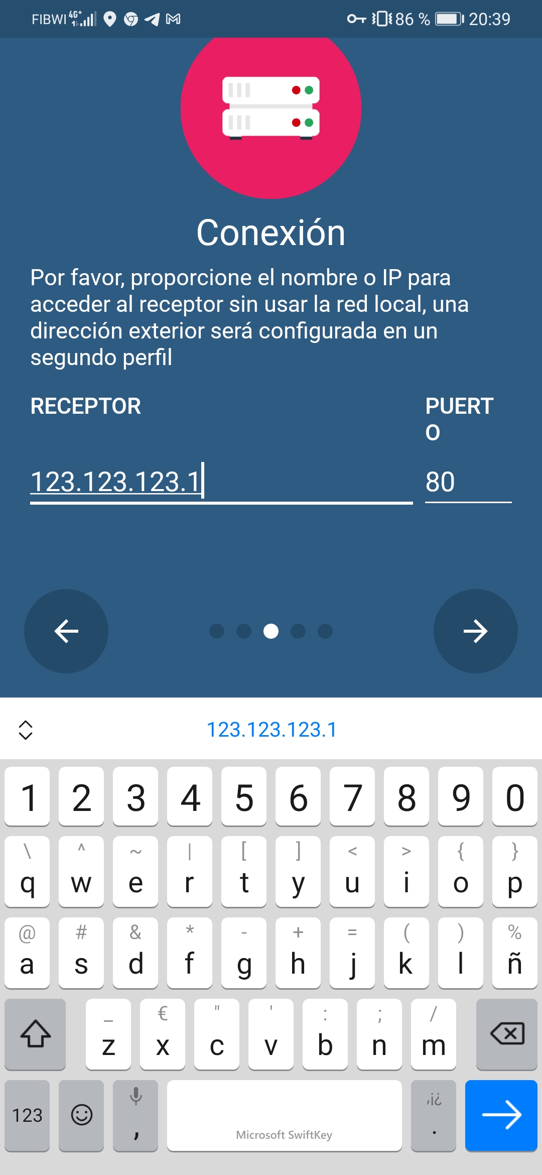 Una vez abierta la aplicacion Dreamplayer pues introducimos la ip wireguard del receptor