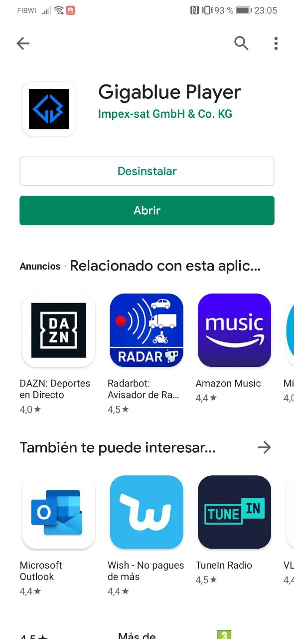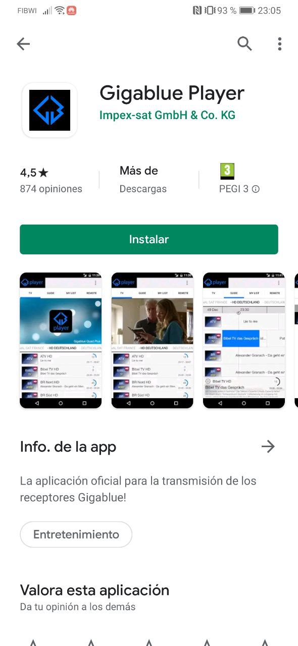 Para realizar la instalacion de Gigablue Player simplemente accedemos a la play store buscamos la app y realizamos su instalacion.