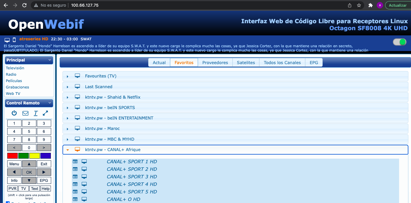 Ahora ya simplemente podemos acceder desde nuestro mac al receptor enigma2, usando la ip tailscale de nuestro receptor enigma2