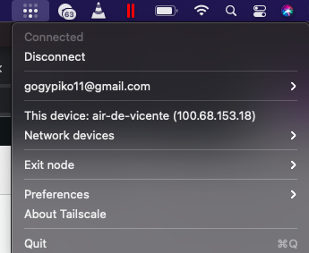 En este caso es muy facil, simplemente instalamos Tailscale en nuestro movil, pc, etc…, en este ejemplo en un pc mac, y simplemente nos logueamos con nuestro correo electronico de registro en tailscale