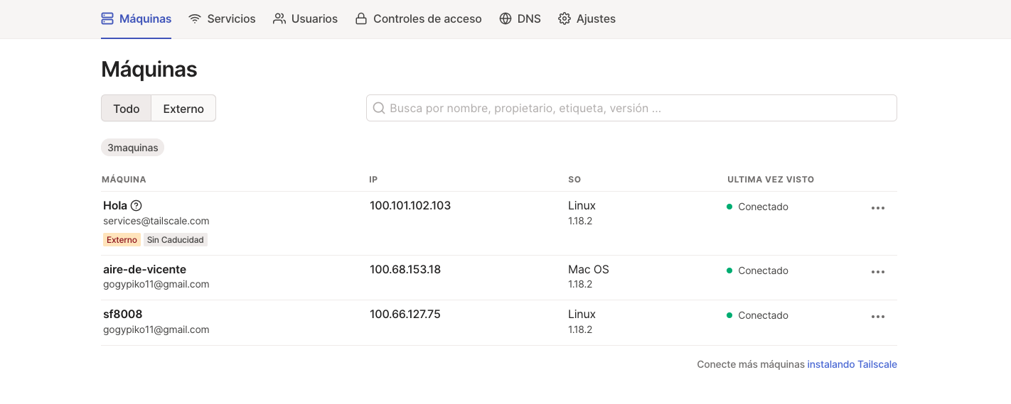 Automaticamente se añadira nuestro device a la red tailscale, ahora observaremos que tenemos nuestro receptor enigma2 y en este caso el pc mac