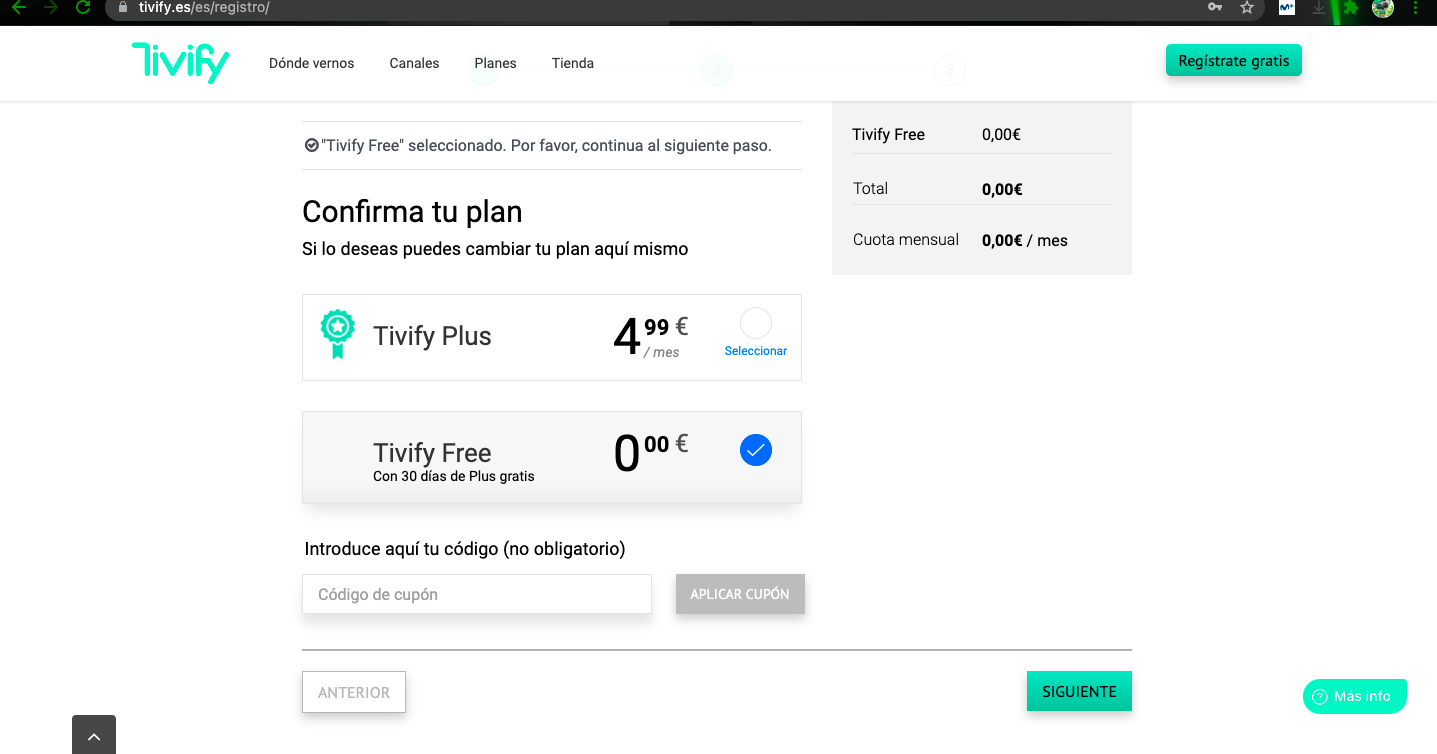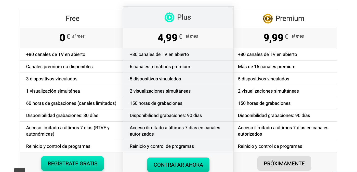 Aparte de la version gratuita Tivify tiene otros planes premium que añaden mas canales o caracteristicas a la oferta gratuita:
