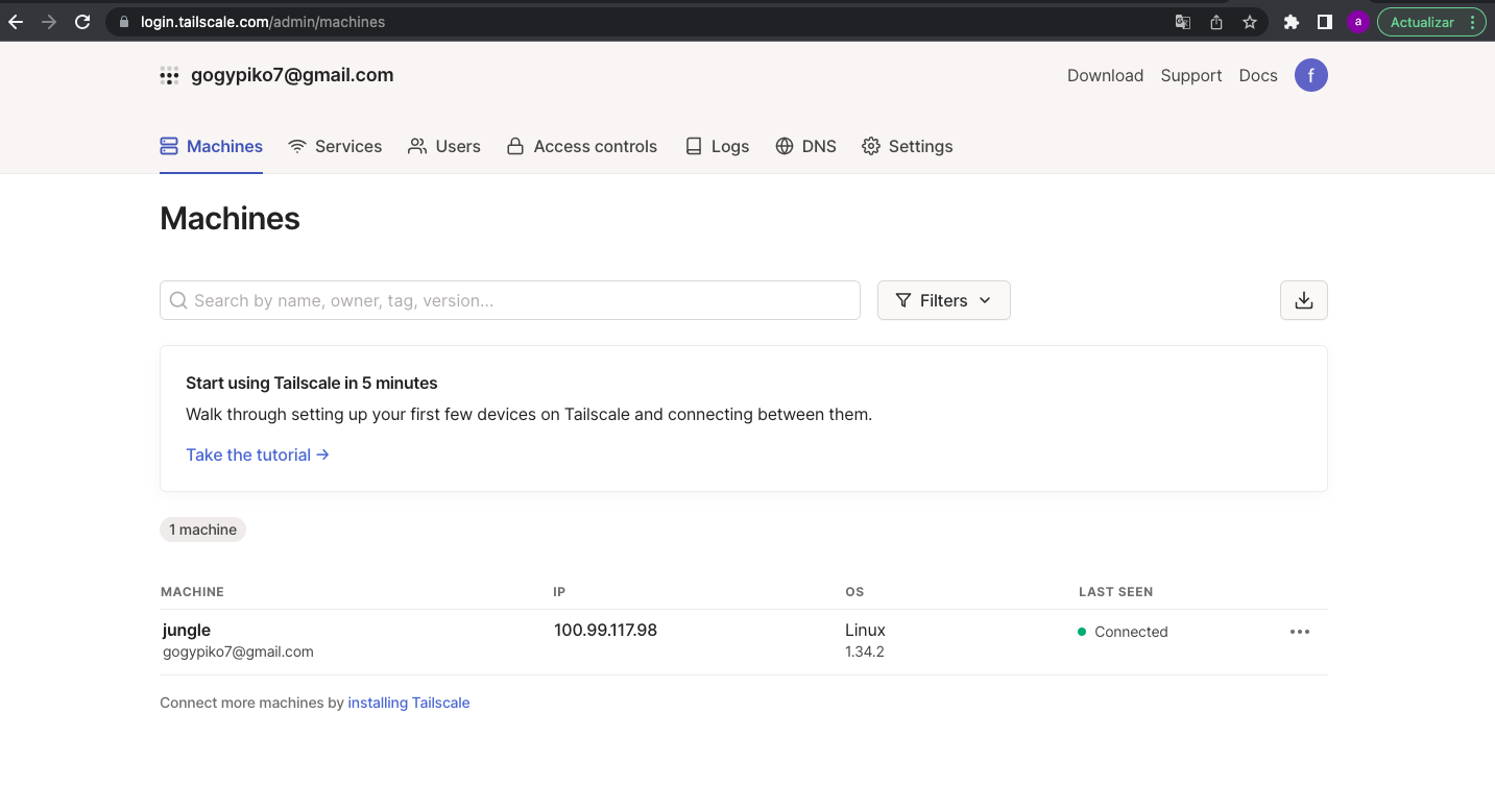 Nota: Si instalamos tailscale en otras maquinas nuestras, usando nuestra cuenta de registro tailscale, somos administrador, por lo que tendremos acceso a todos los servicios de ubuntu server a traves de las otras maquinas.