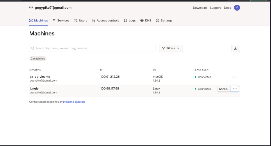 Las maquinas invitadas tendran acceso a todos los servicios de nuestra cuenta tailscale, para limitar el acceso solo al servicio que deseemos, en este ejemplo oscam, debemos realizar los siguientes pasos.