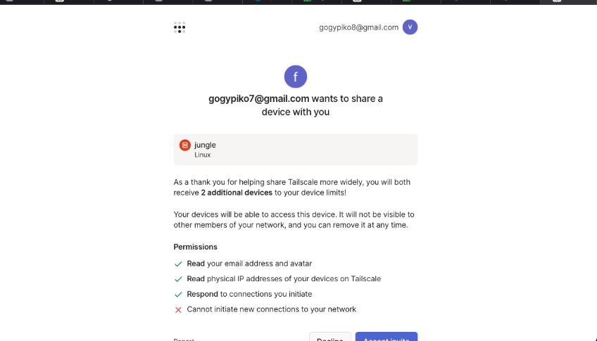 Esa otra persona accedera al link y se logueara con su cuenta tailscale y aceptara la invitacion