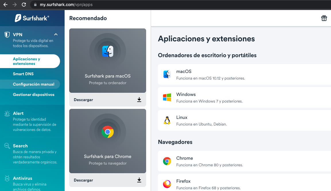 1. Acceder a la web oficial de surfshark a traves del siguiente enlace https://surfshark.com/es/