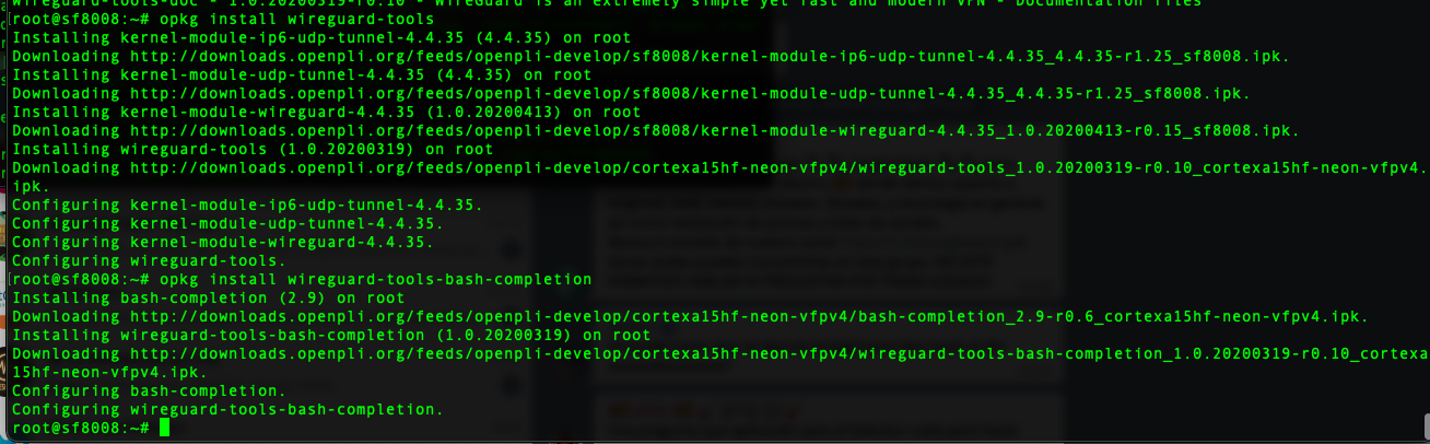 root@vuzero:~# opkg install wireguard-tools