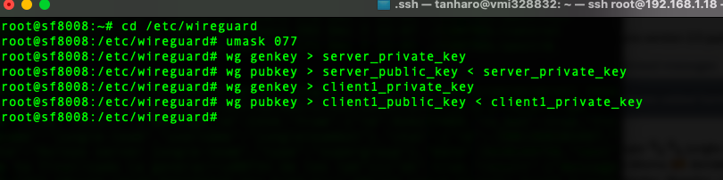 wg genkey > server_private_key