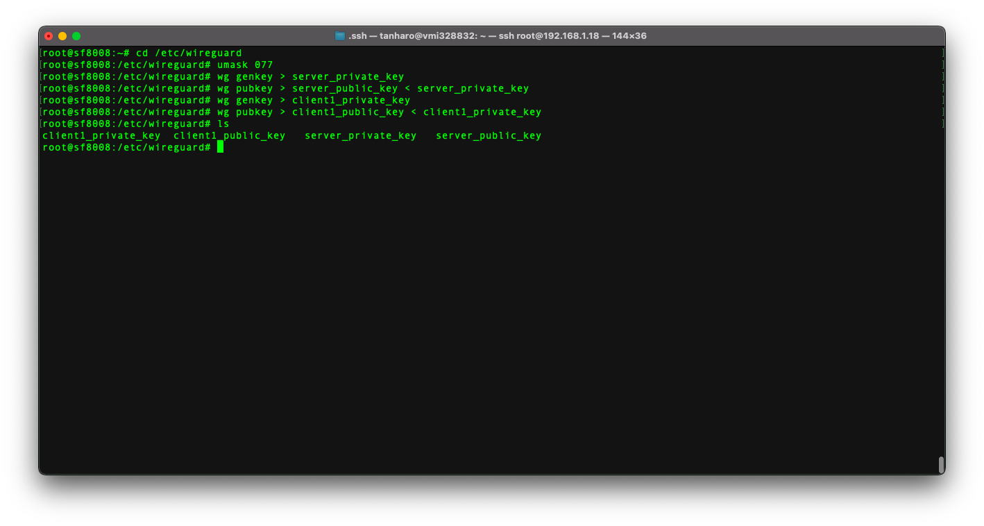 wg pubkey > client1_public_key < client1_private_key