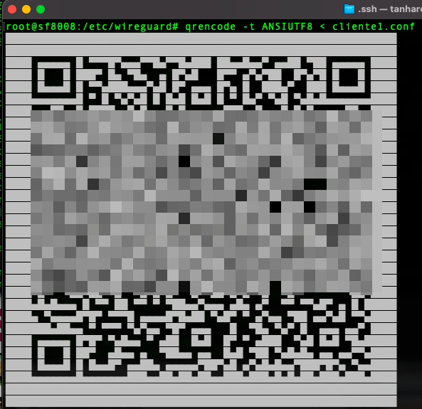 Para facilitar la creacion de los datos cliente en nuestro movil por ejemplo, tenemos la posibilidad de crear un codigo QR que tras instalar wireguard en nuestro movil podemo realizar la conexion leyendo dicho codigo QR.