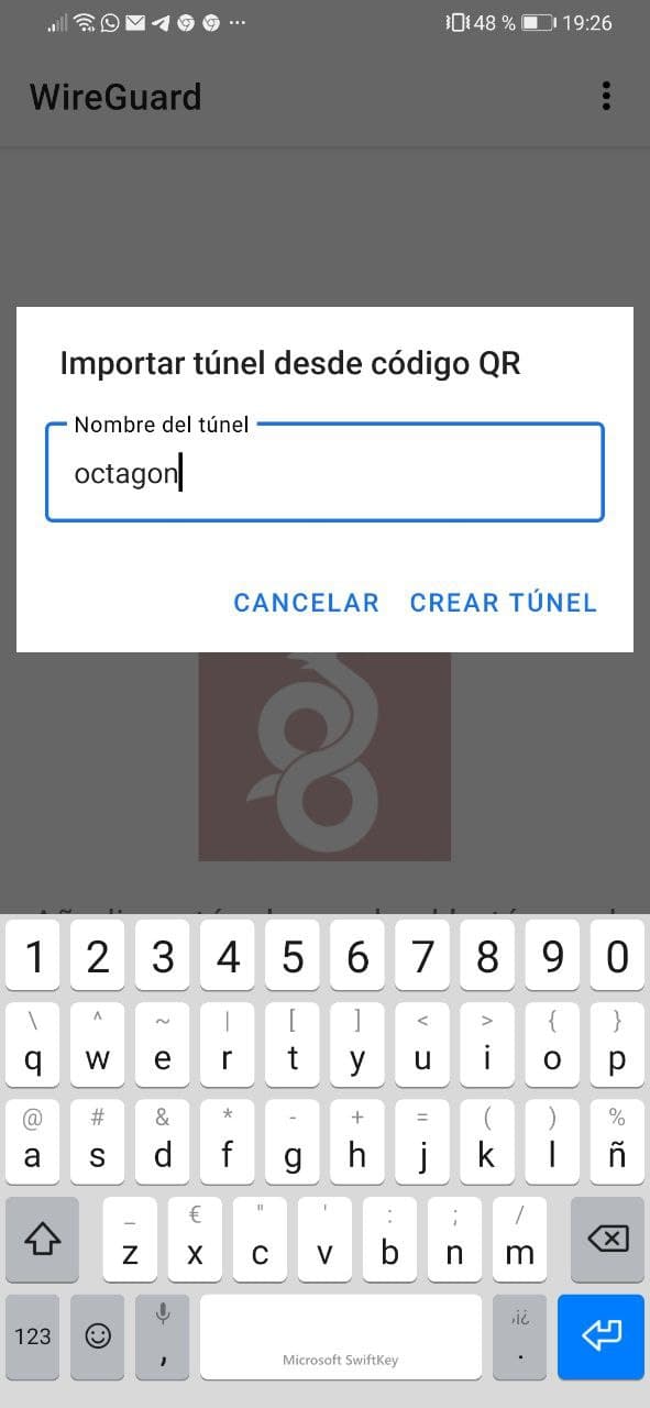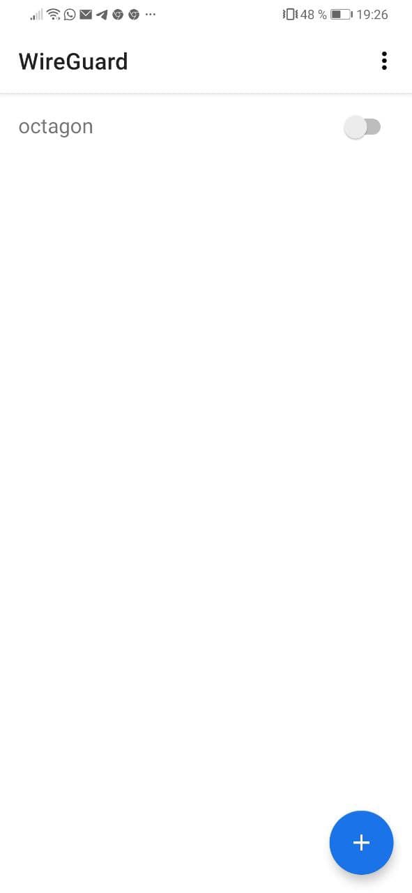 Tras instalar wireguard en nuestro movil, vamos a ver que facil es establecer la conexion, para ello pulsamos en + para añadir una nueva