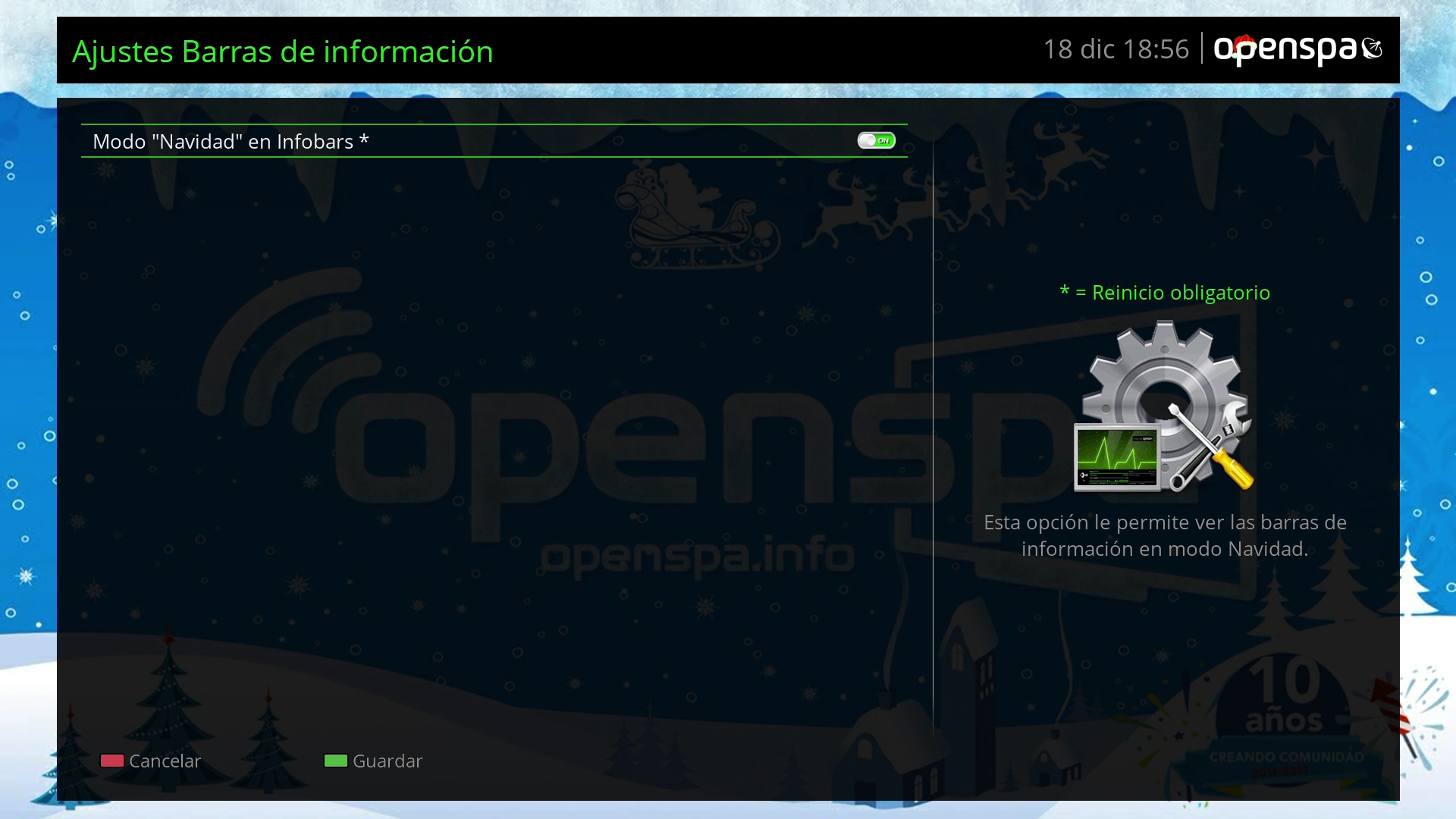 Activamos modo navidad en infobar y reiniciamos enigma2