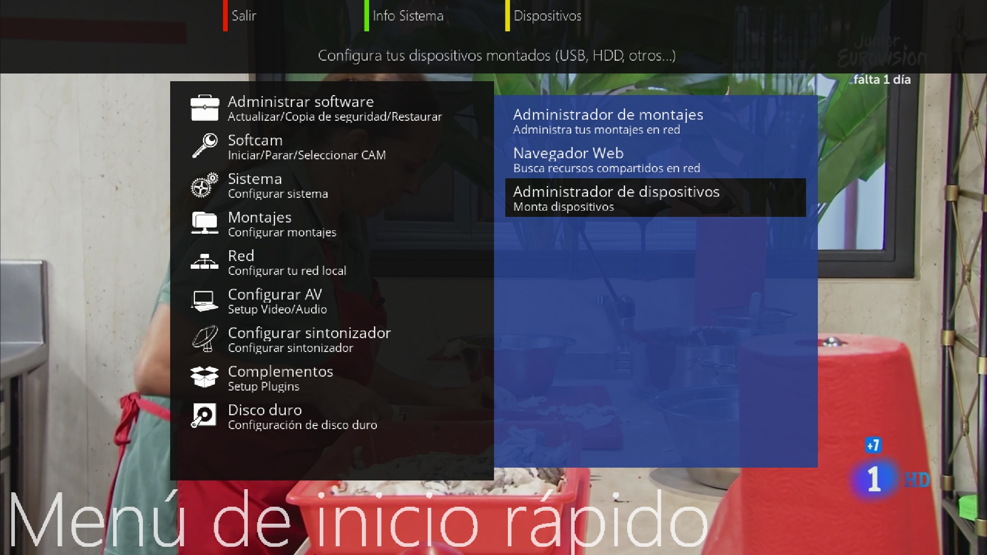 Una vez que ya hemos introducido nuestro disco duro interno de 2.5 » realizamos una configuracion del mismo desde el menu inicializacion de la imagen que tengamos introducida en nuestro receptor
